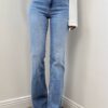 Jeans flare a vita alta, pensato per valorizzare la silhouette con una linea aderente su fianchi e cosce che si apre gradualmente dal ginocchio in giù. La vita alta enfatizza il punto vita e dona un effetto slanciato e armonioso.