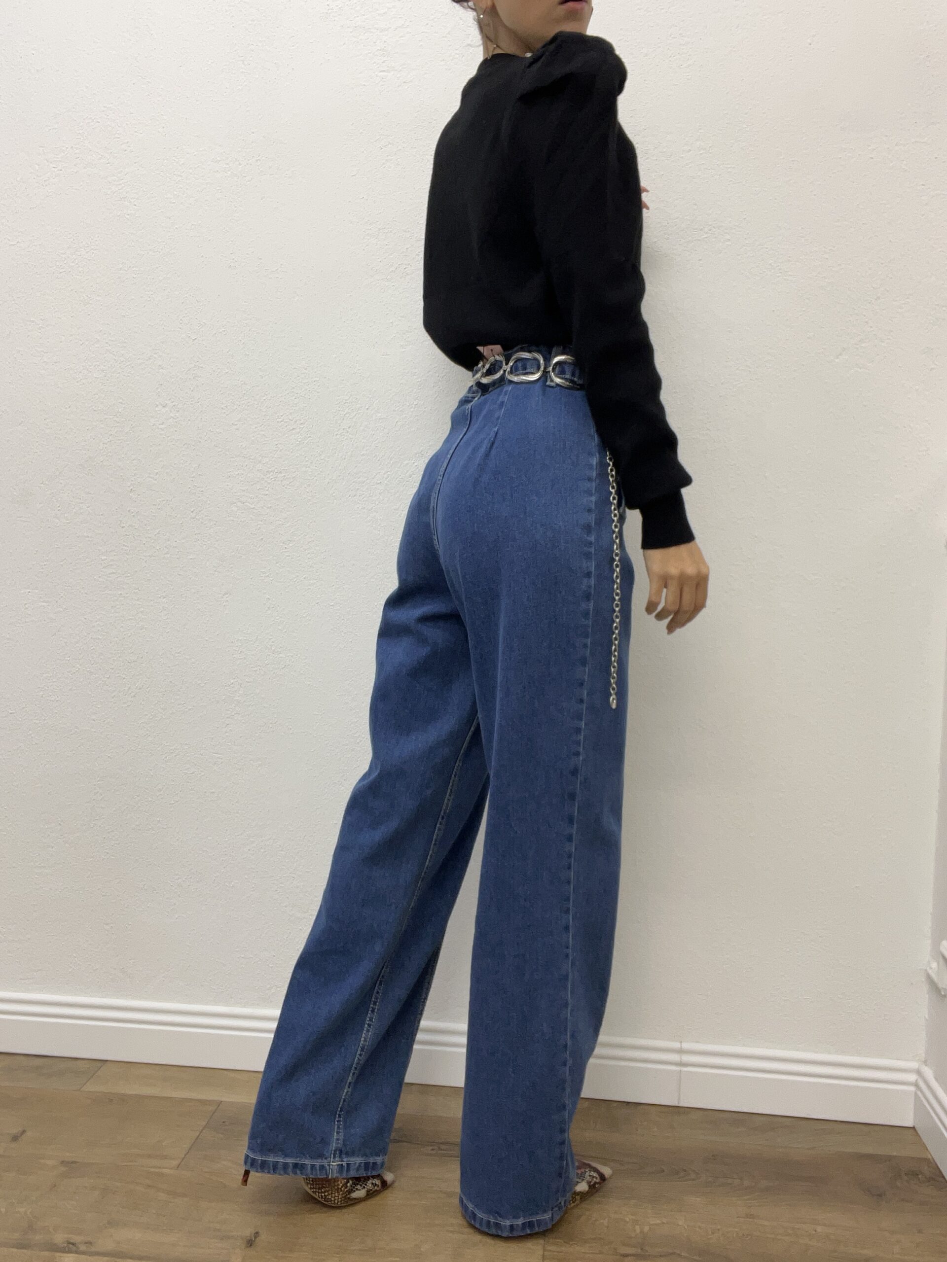 Jeans a vita alta con dettaglio di finte taschine sulla parte superiore a gamba larga.