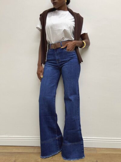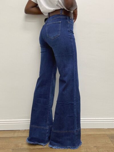 Scopri il perfetto equilibrio tra stile boho e comfort moderno con il nostro jeans a palazzo elasticizzato con dettaglio frange. Realizzato in un denim morbido e leggermente elasticizzato, questo modello abbraccia delicatamente le forme sui fianchi per poi aprirsi in una silhouette ampia e fluida dal ginocchio in giù, esaltando la figura con un tocco di eleganza disinvolta.