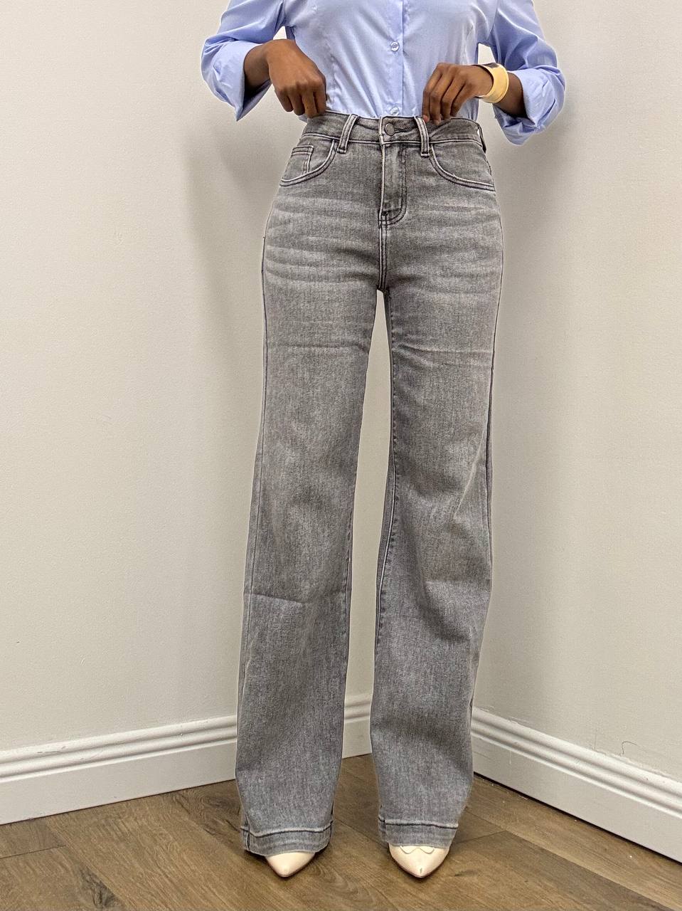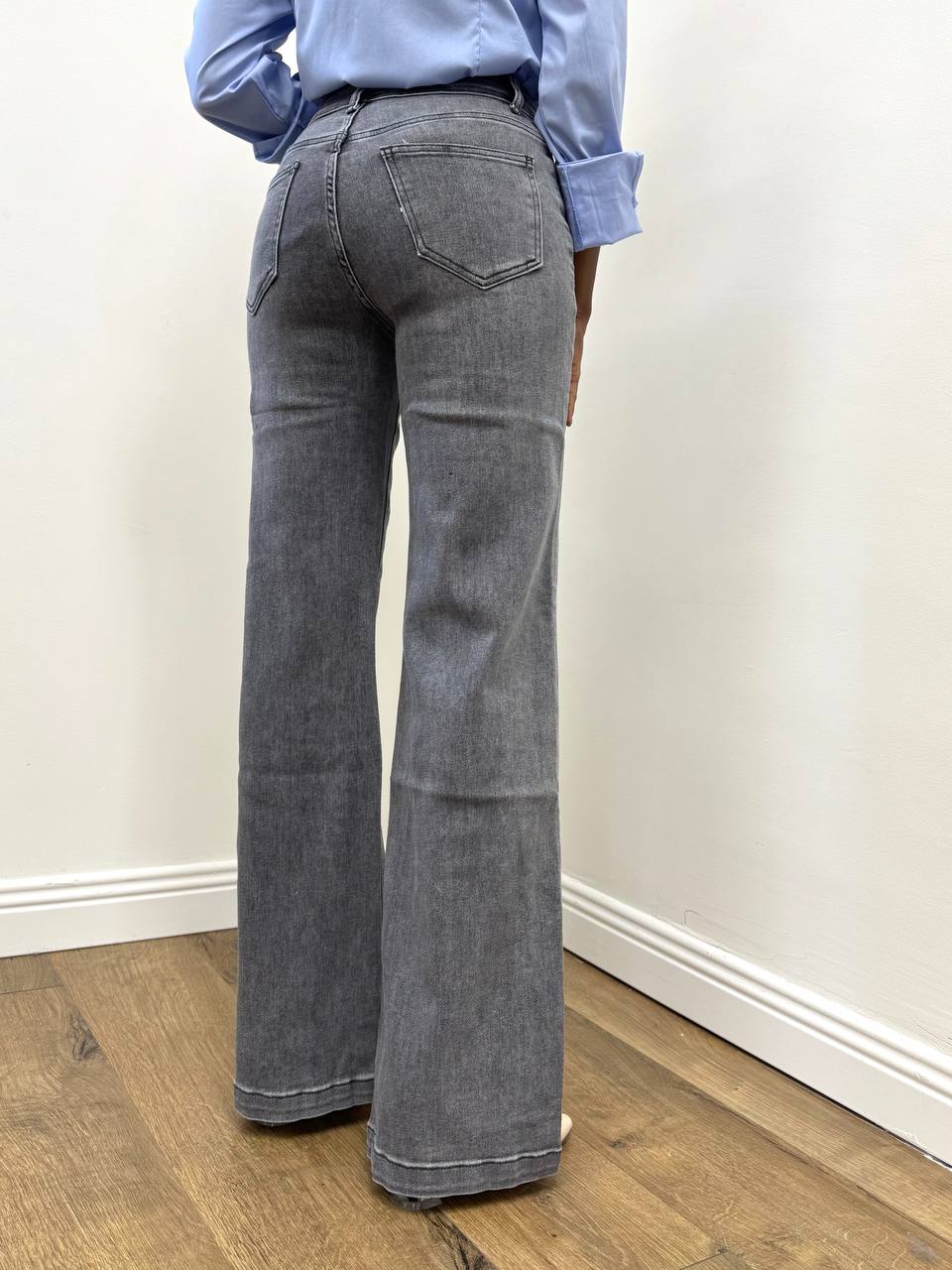 Jeans a vita alta a gamba larga a tinta unita con dettaglio di taschine posteriori.
