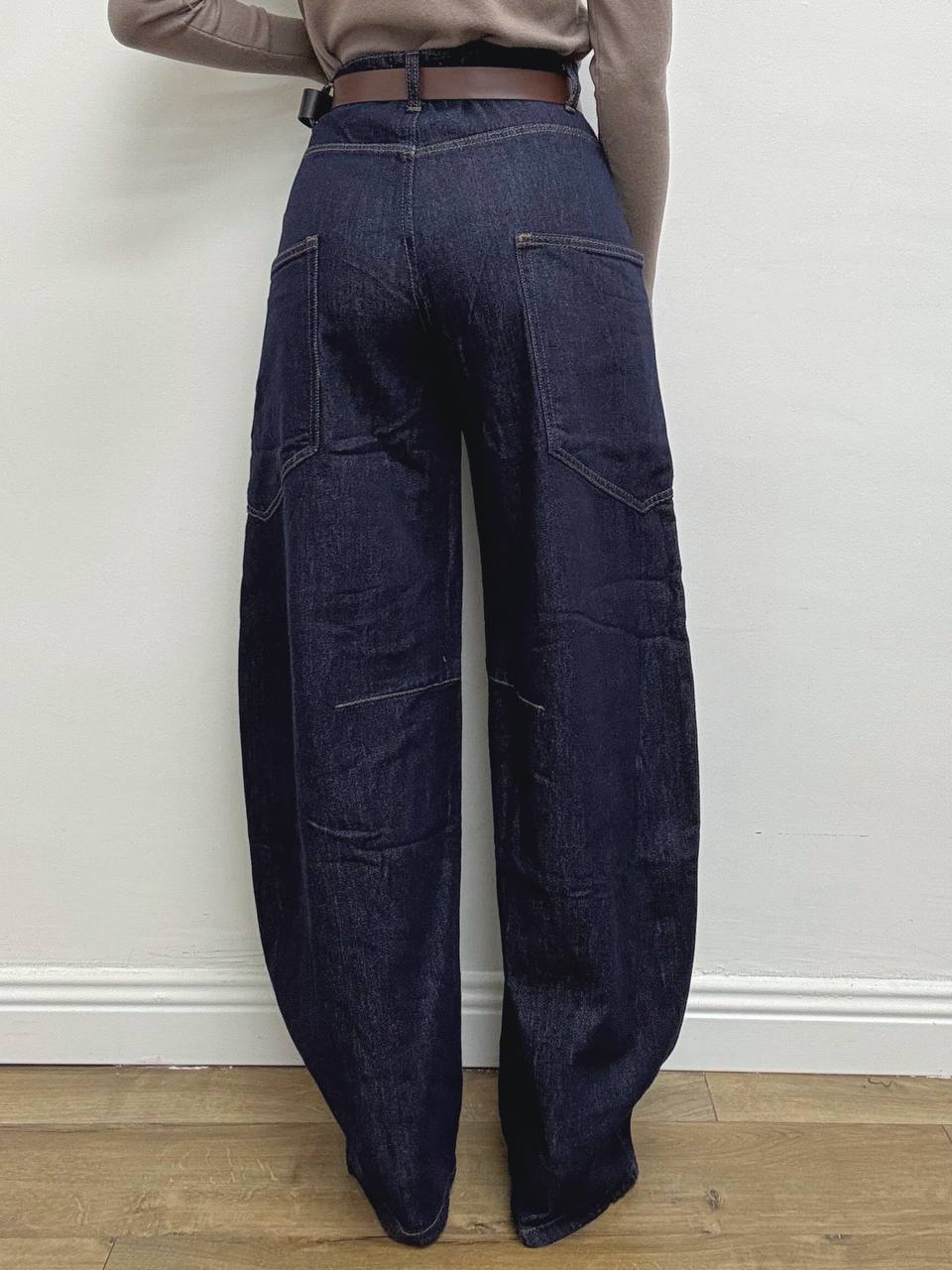 Jeans Barrel dalla caratteristica silhouette pensata per un look contemporaneo e di tendenza. Realizzato in denim strutturato, presenta una chiusura frontale con zip e bottone a vista, unita a pratici passanti per cintura che aggiungono versatilità e funzionalità al capo. Il design cargo si arricchisce di dettagli ispirati allo stile utility, perfetti per outfit casual dal carattere deciso. Comodo e originale, è ideale per chi ama distinguersi con stile.