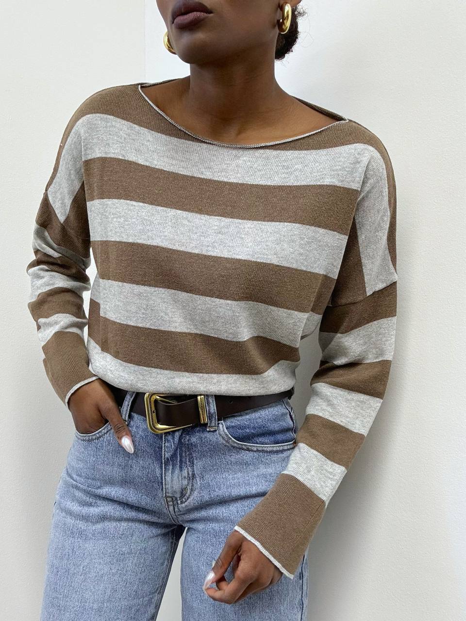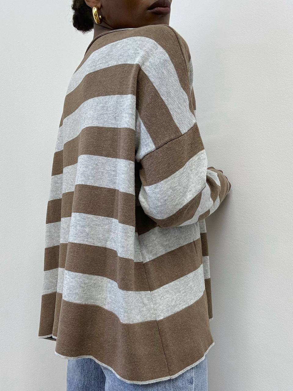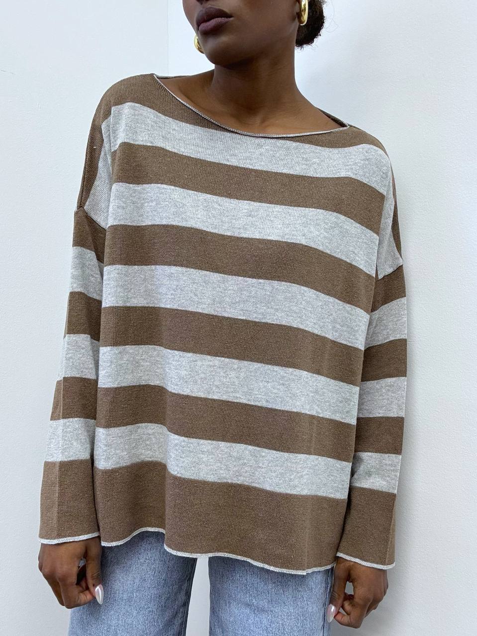 MAGLIA A RIGHE TABACCO E GRIGIO