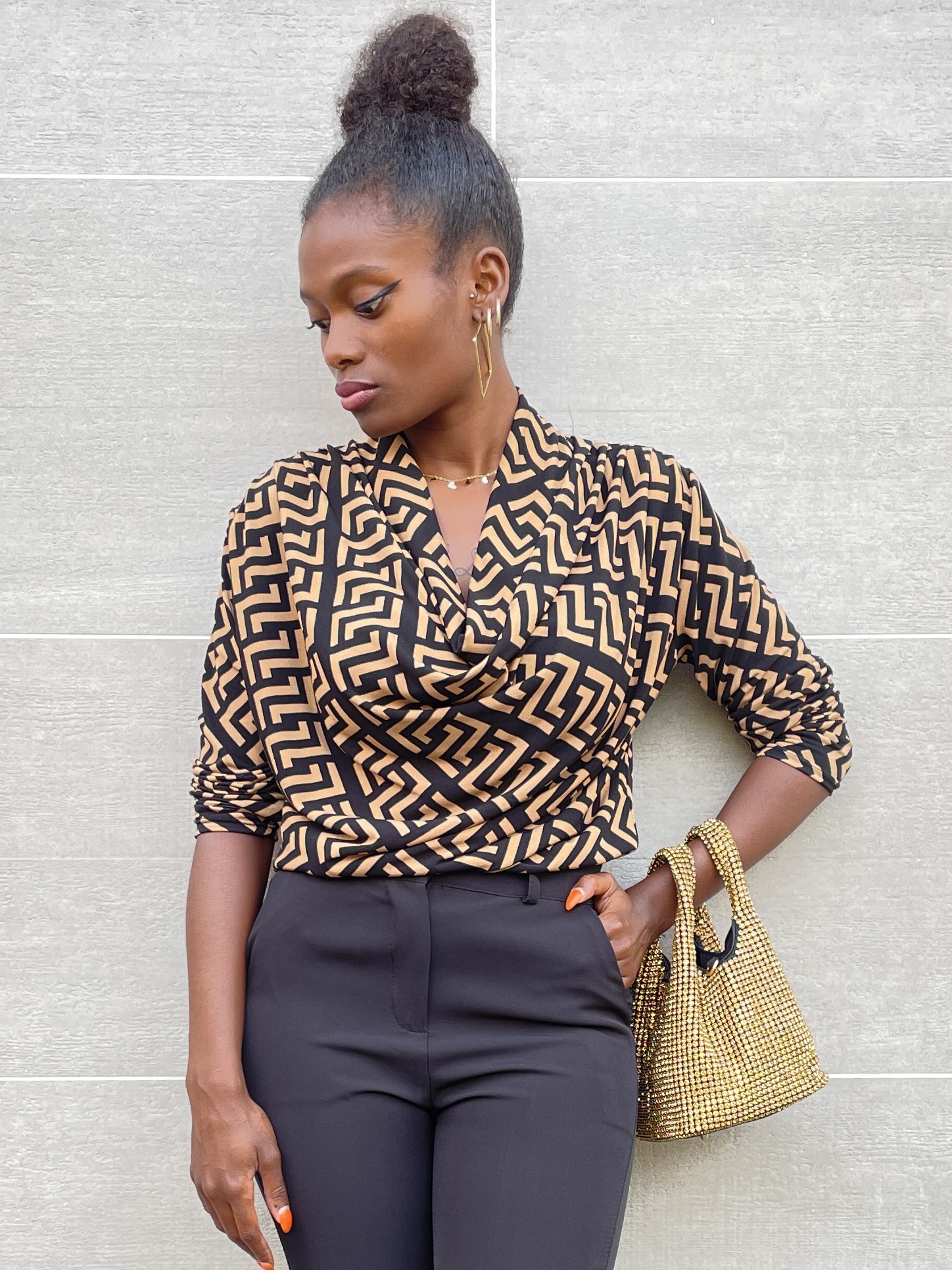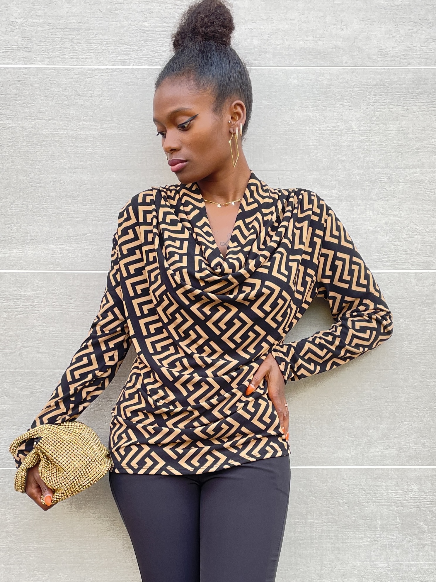 Maglia con scollo a V con stampa geometrica su tutta la lunghezza.