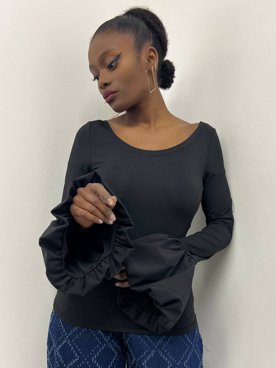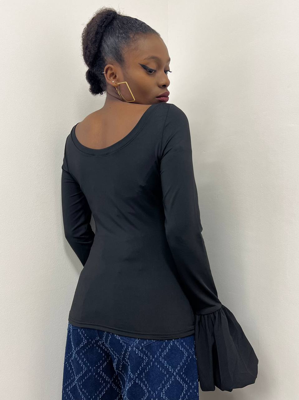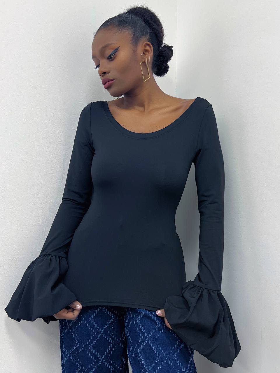 Maglia a girocollo a tinta unita con dettaglio di manica a campana.