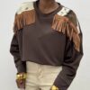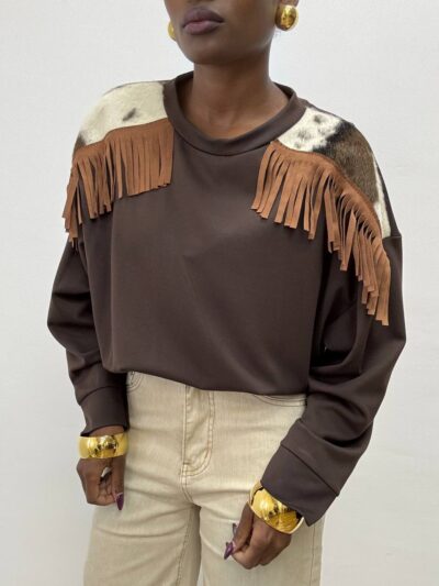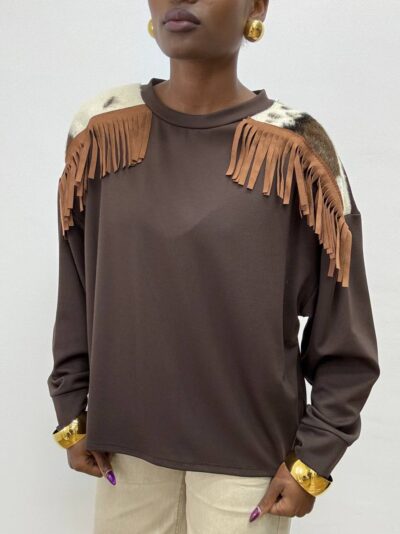 FELPA INDIA CON FRANGIA ANIMALIER CIOCCOLATO