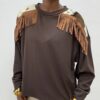 Il taglio classico a girocollo è valorizzato da un design originale, le spalle sono impreziosite da inserti animalier che aggiungono un twist audace e contemporaneo con dettaglio di frange cucite in tonalità camel ,creano movimento e personalità ad ogni passo. Un capo versatile e di carattere, ideale per chi ama distinguersi con stile.