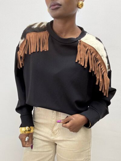 FELPA INDIA CON FRANGIA ANIMALIER NERA