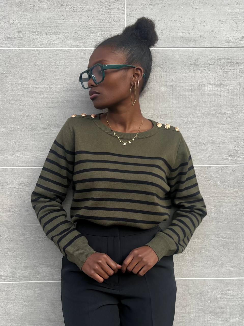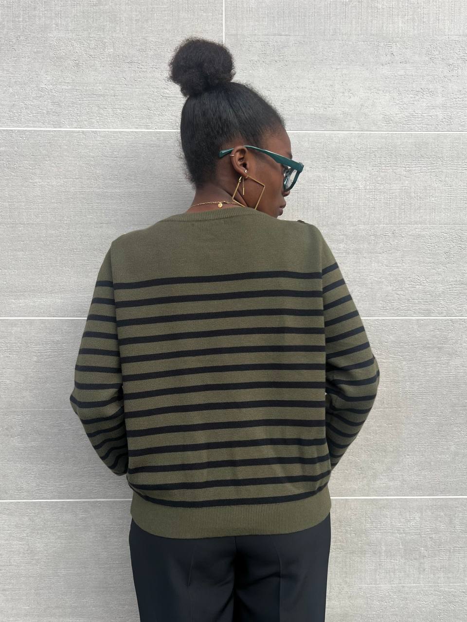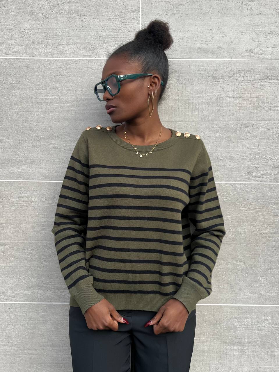 Maglia a righe con bottone gioiello.