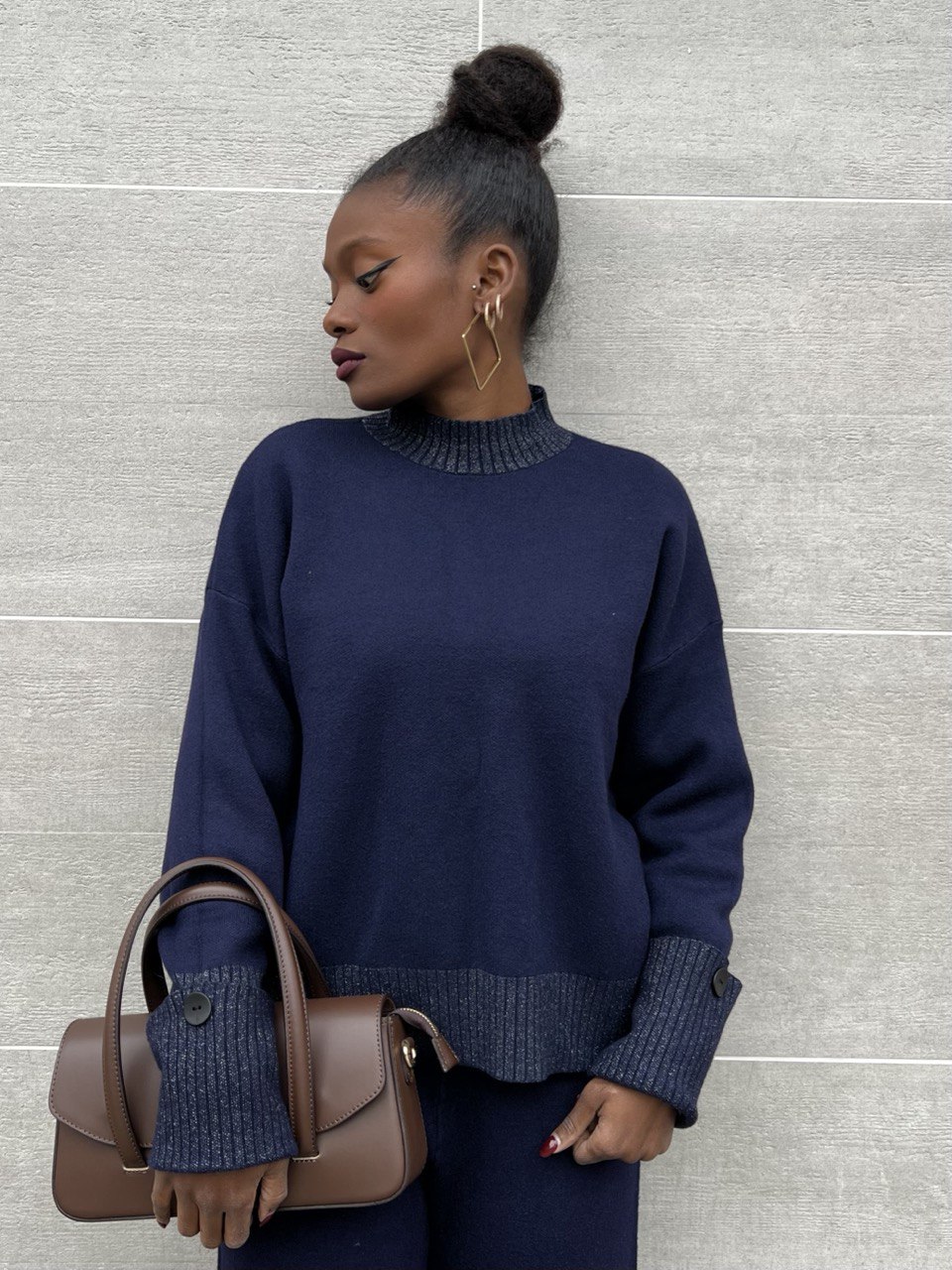 Maglia a girocollo alto con brillantini a tinta unita. Elasticizzati.
