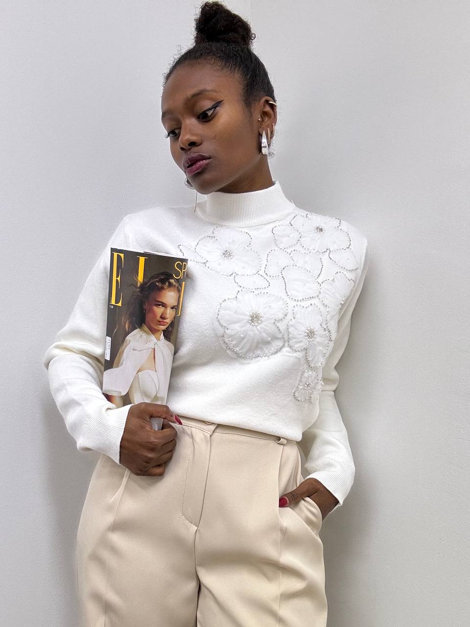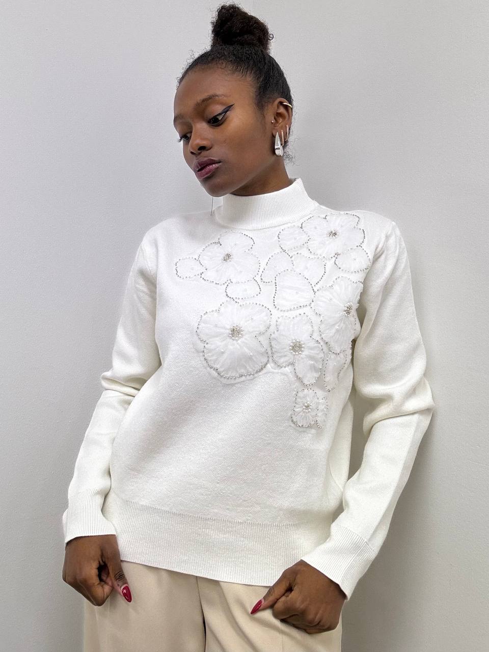 Lupetto con dettaglio di fiorellini con paillettes. Elasticizzata.