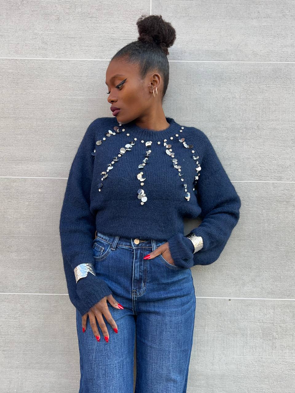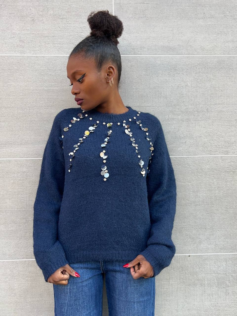 MAGLIA GRANADA CON PAILLETTES BLU NOTTE