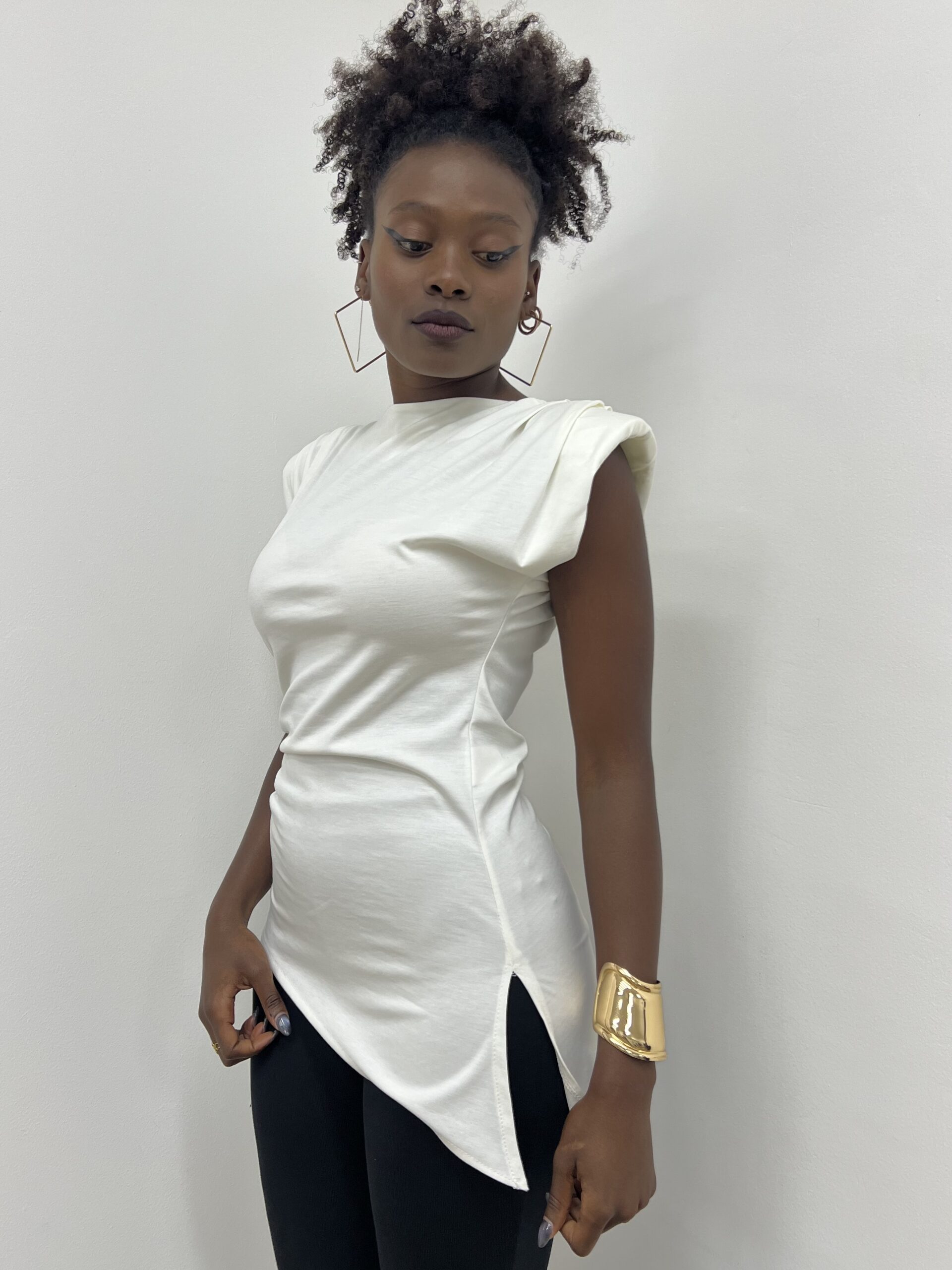 Maglia con dettaglio di spalline insellate a tinta unita.