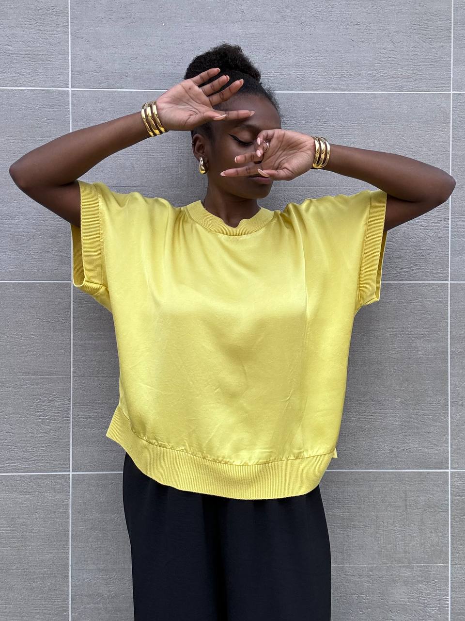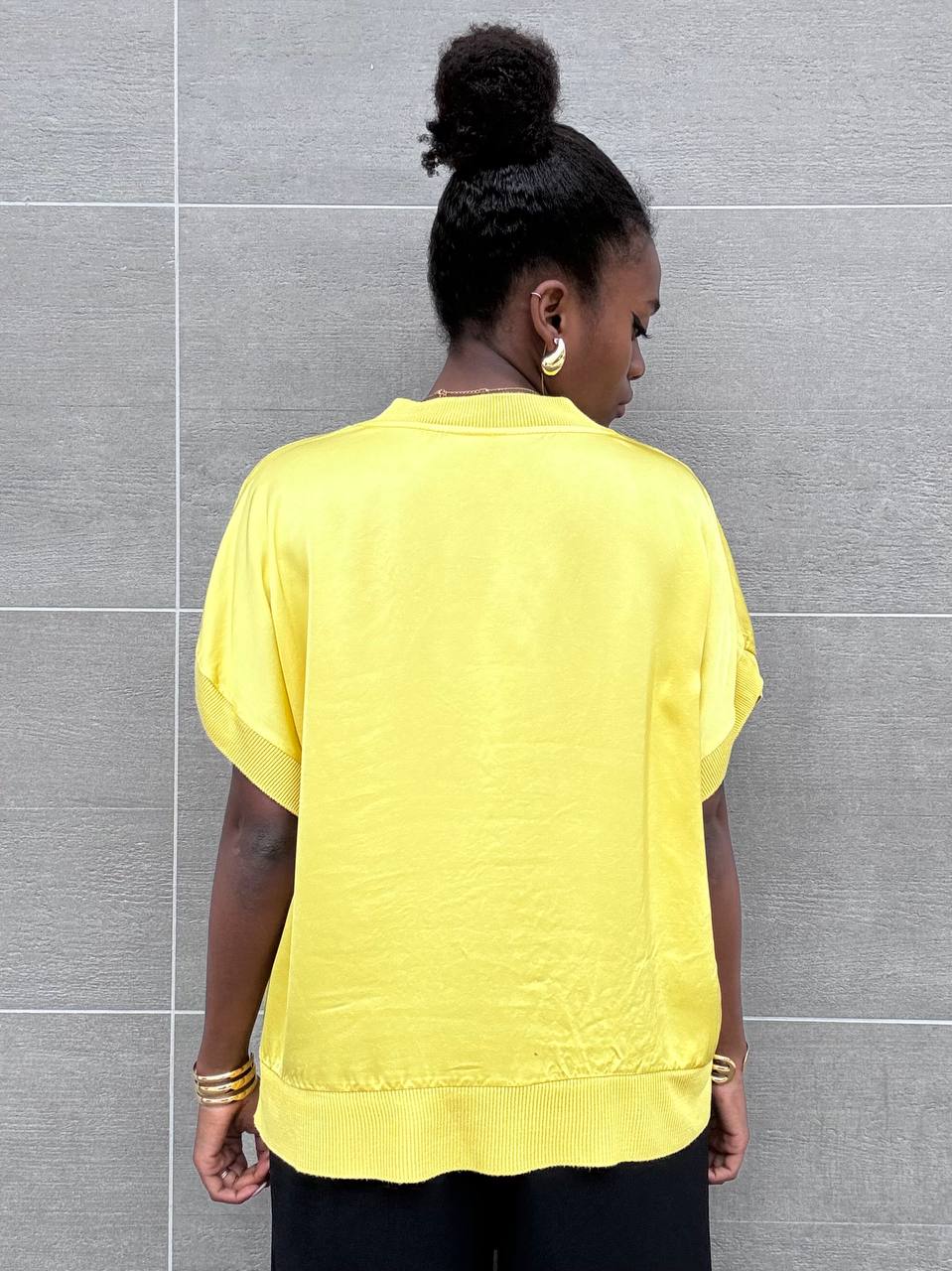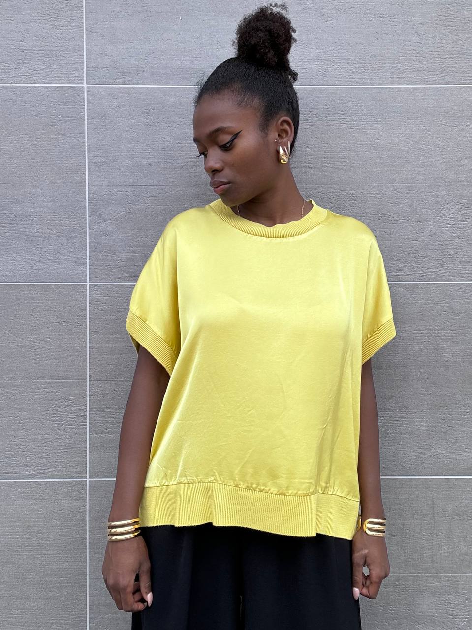 Maglia a girocollo con dettaglio di costina sia sulla maniche che sul bordo finale.