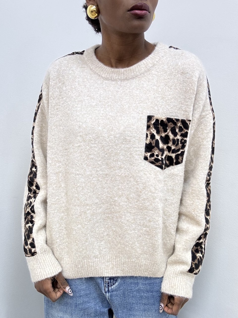MAGLIA LEOPARD BEIGE MELANGE