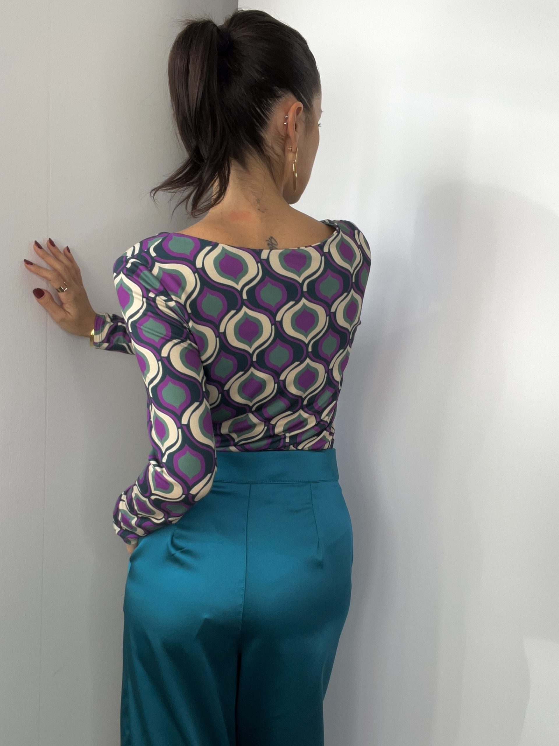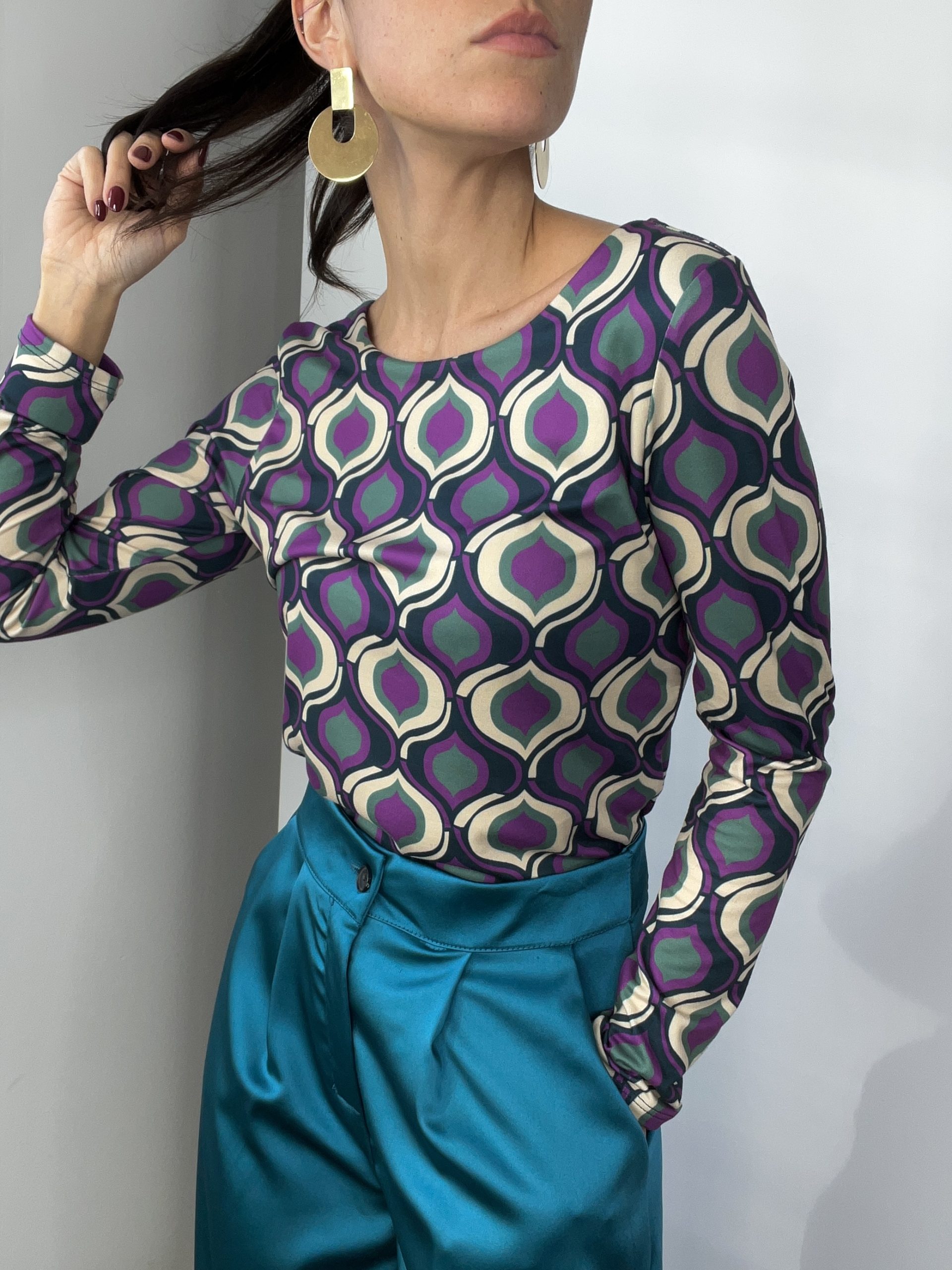 Maglia Made in Italy elasticizzata con stampa .
