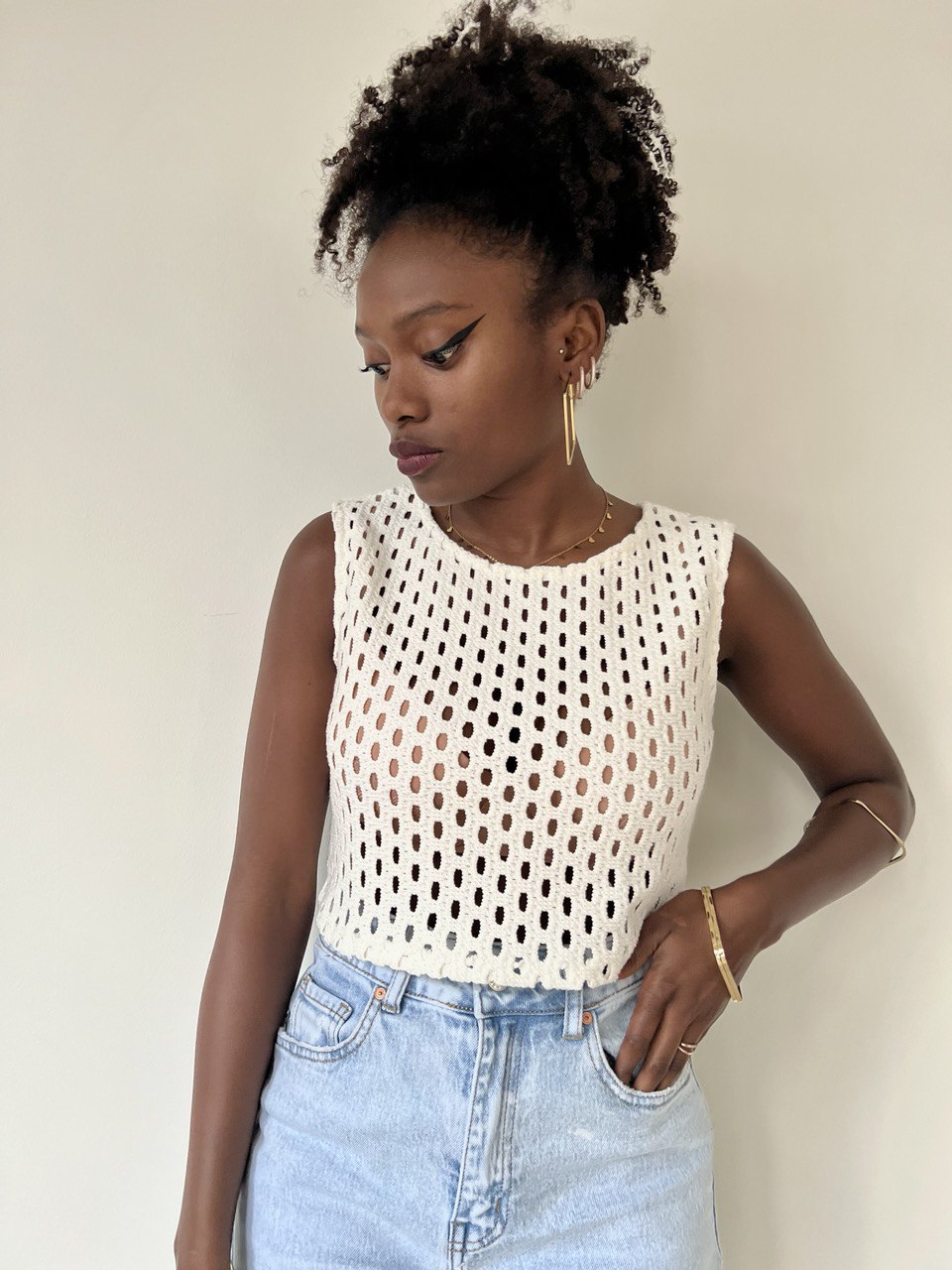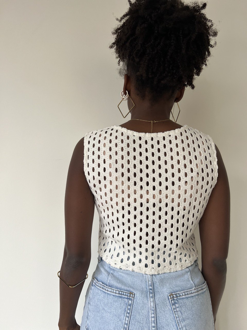 Maglia Crop a girocollo smanicata traforata su tutta la lunghezza