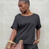 Maglia in girocollo in cotone a tinta unita con manica cucita.
