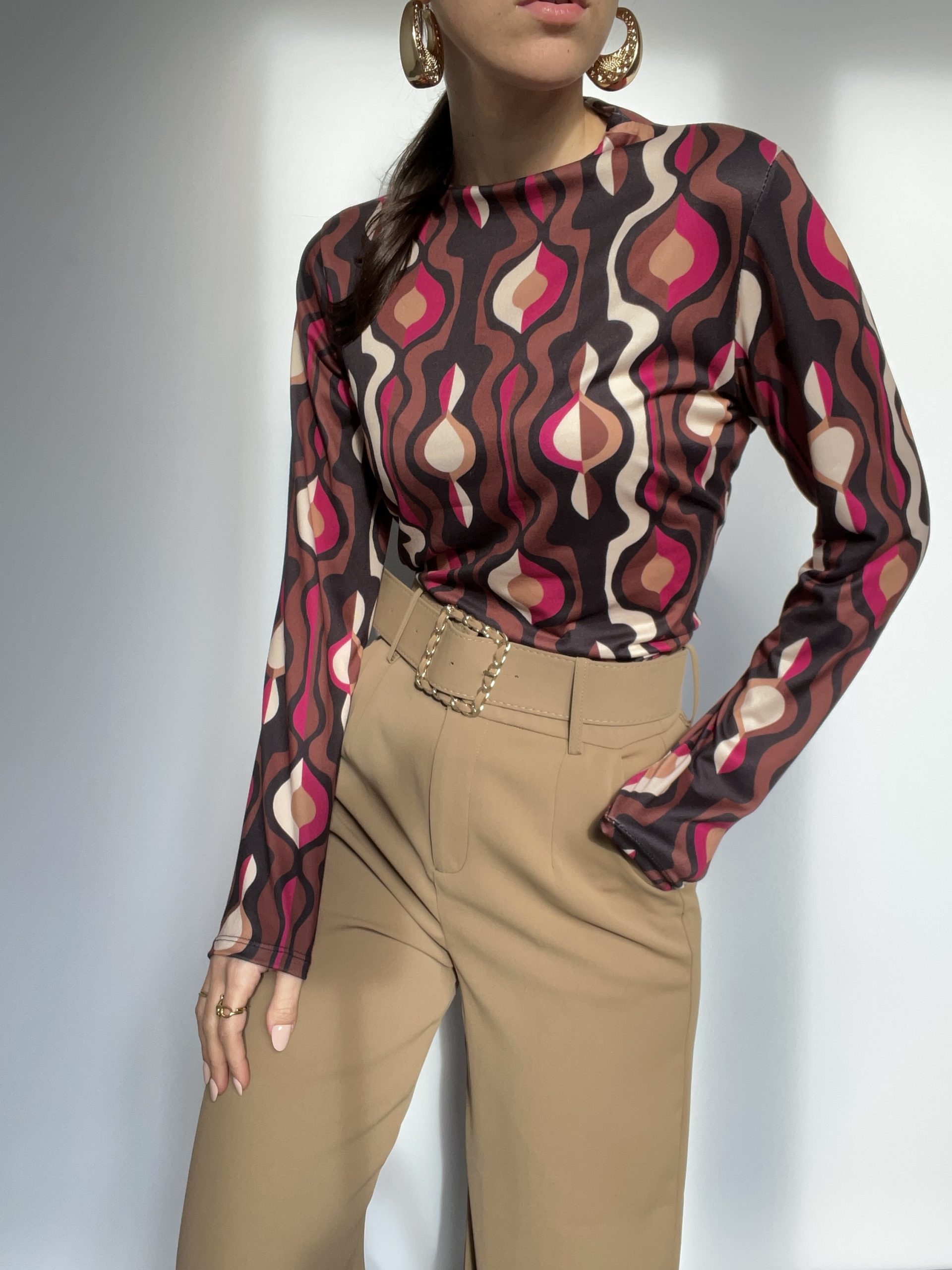 Maglia con girocollo con stampa su tutta la lunghezza.