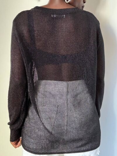 la maglia é un capo che unisce comfort e raffinatezza. Realizzata in morbido tessuto lurex, avvolge la silhouette con una luce sofisticata e mai eccessiva.