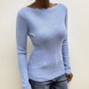 Maglia a manica lunga realizzata in morbida viscosa con tessuto altamente elasticizzato per un comfort totale e una vestibilità aderente. Il design semplice è impreziosito da un orlo ondulato, che dona un tocco femminile e originale. Un capo versatile, perfetto da indossare da solo o come base per look a strati, ideale sia per il tempo libero che per l’ufficio.