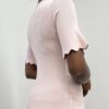 Il design è impreziosito da un delicato orlo ondulato, che aggiunge un tocco raffinato e dinamico al capo, donando movimento e carattere. Le maniche corte elasticizzate completano il modello, assicurando praticità e una linea armoniosa.