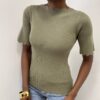 Una maglia a manica corta in viscosa dallo stile essenziale e femminile, perfetta per valorizzare la silhouette con comfort e leggerezza. Il tessuto, particolarmente morbido e altamente elasticizzato, avvolge il corpo adattandosi in modo naturale alle forme, garantendo una vestibilità confortevole e versatile.