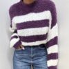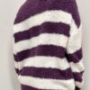 Maglioncino girocollo in morbido misto alpaca e viscosa, caratterizzato da un design a righe larghe alternate nei toni viola e bianco. La fibra di alpaca conferisce calore e leggerezza, mentre la viscosa dona una texture setosa e confortevole a contatto con la pelle. Il capo è elasticizzato, garantendo una vestibilità comoda e flessibile, perfetta da indossare sia da solo che sotto giacche e cappotti. Lo stile a righe bold aggiunge un tocco di personalità e modernità al look quotidiano.