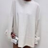 Maglioncino a girocollo dal design minimalista, caratterizzato da una vestibilità ampia e confortevole che garantisce libertà di movimento e un look rilassato. Il punto focale del modello è la cucitura verticale a vista che parte dallo scollo e scende fino all’orlo, aggiungendo un dettaglio moderno e distintivo alla linea pulita del capo. I polsini sottili completano il design essenziale, rendendo il maglioncino perfetto per creare outfit semplici ma ricercati.