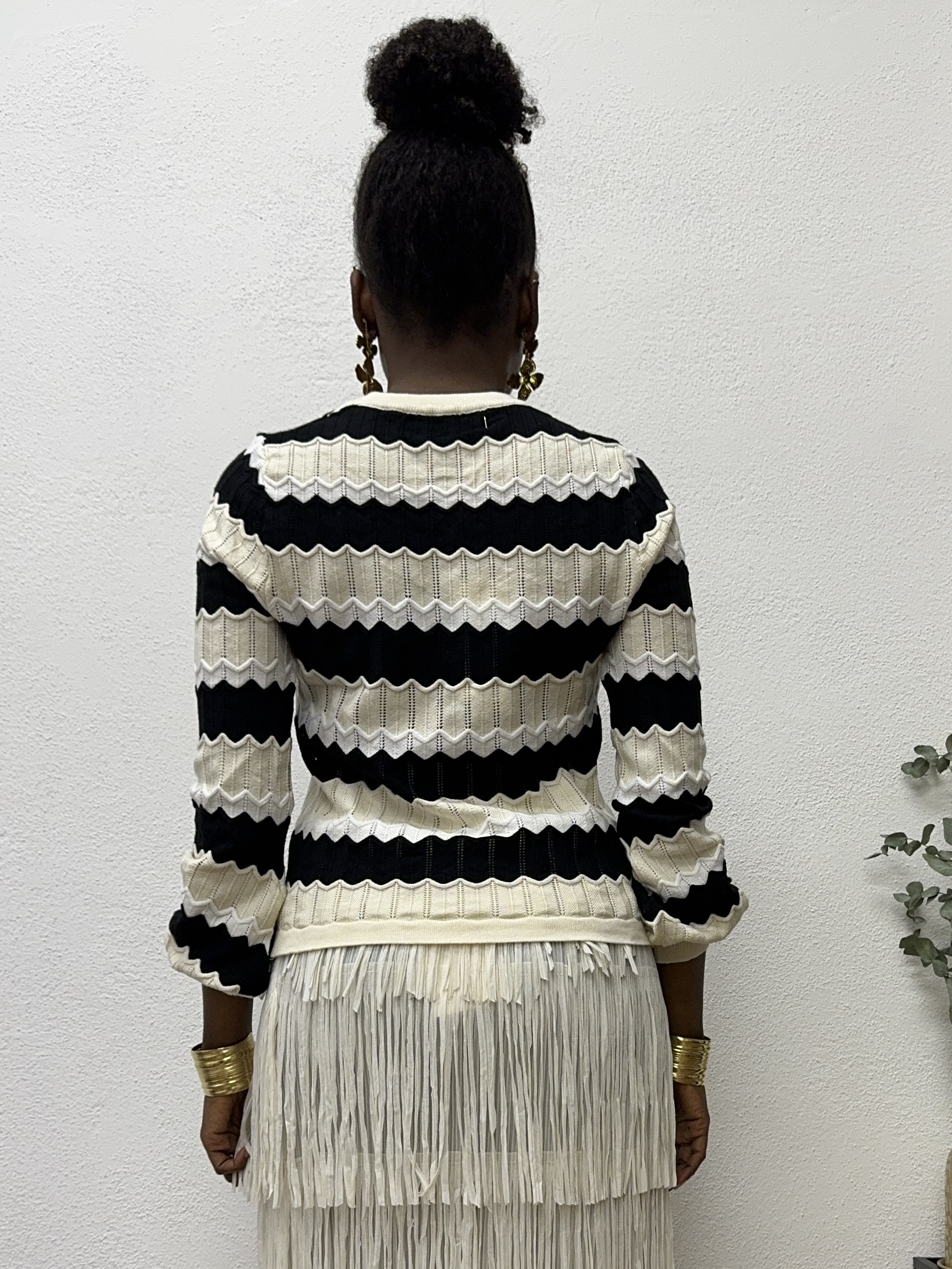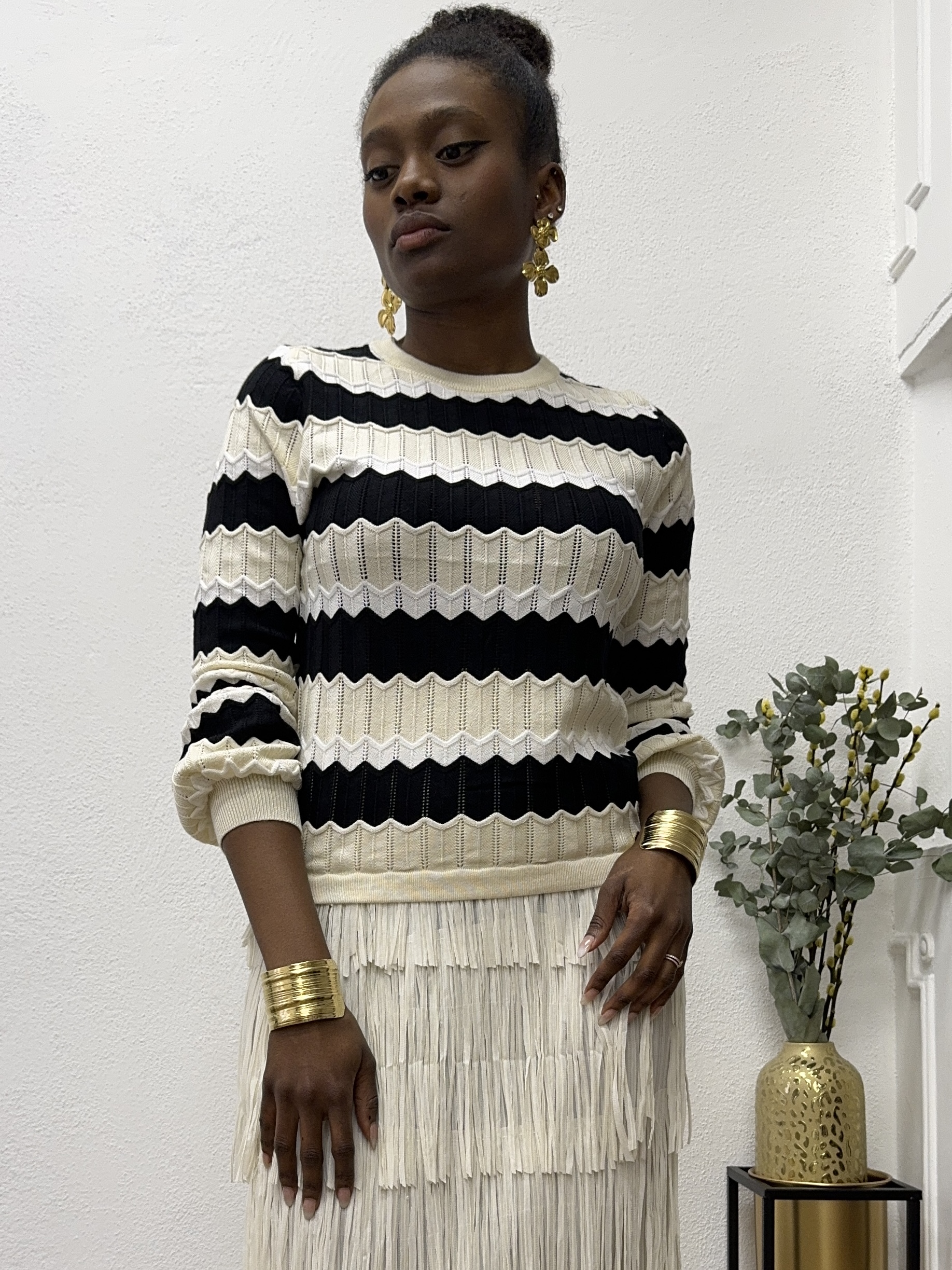 Maglioncino in viscosa a girocollo con stampa geometrica.