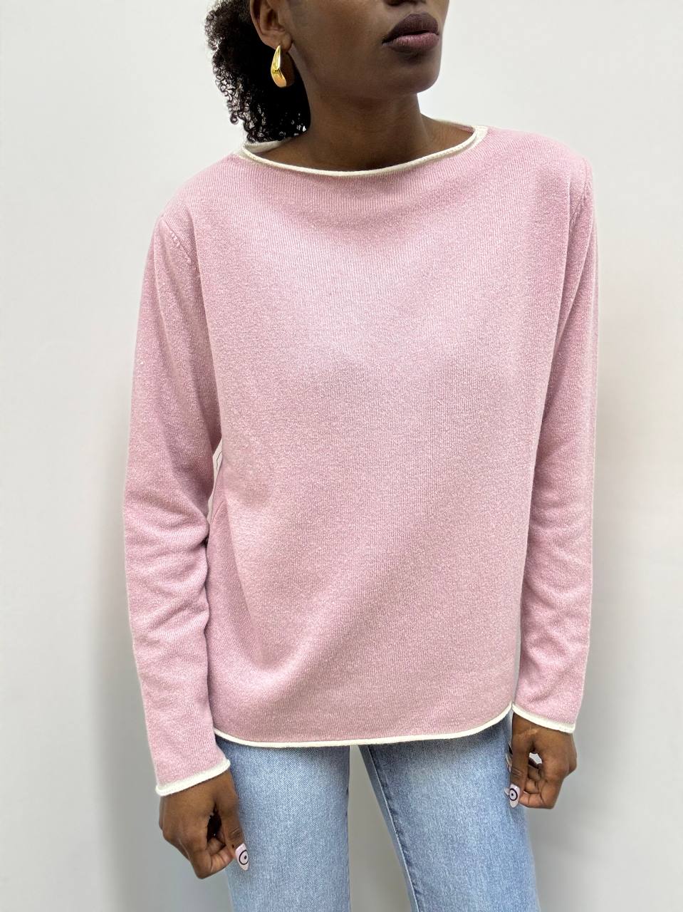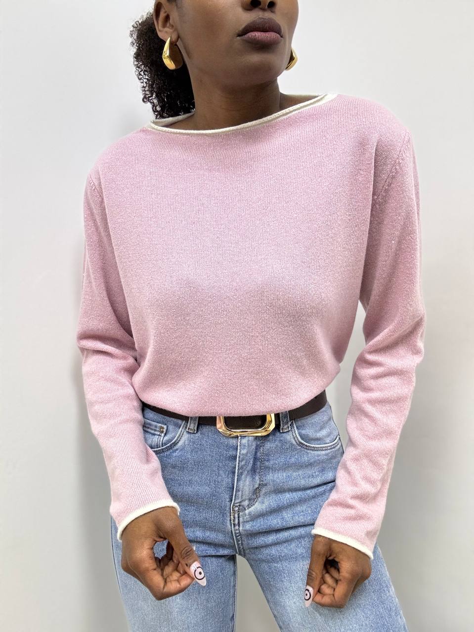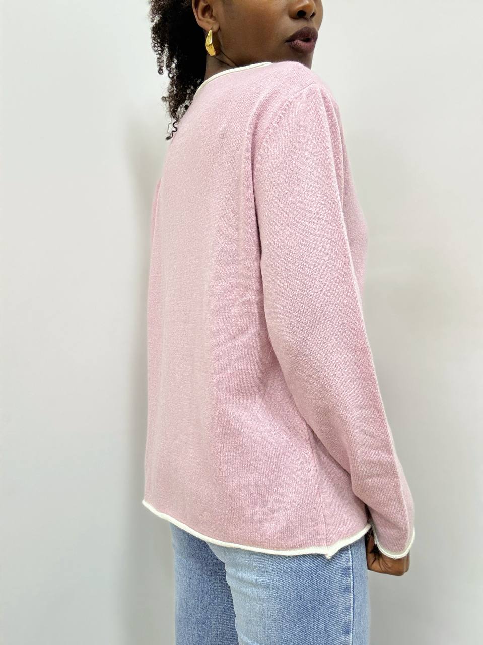 Maglioncino a girocollo realizzato in morbida maglia, caratterizzato da raffinati bordi bianchi a contrasto che decorano il collo, i polsini e l’orlo inferiore. Il design pulito ed essenziale è valorizzato dai dettagli a contrasto, che donano al capo un tocco moderno e ricercato. Confortevole e facile da indossare, è ideale per completare look casual-chic o per aggiungere un elemento di stile a outfit più curati.