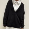Morbido e femminile, questo maglione è caratterizzato da un ampio scollo a V, perfetto per valorizzare il décolleté con un tocco di eleganza casual. Il tessuto elasticizzato assicura una vestibilità confortevole, mentre i bordi a costine su colletto e polsini garantiscono aderenza e definizione. Ideale sia per look quotidiani che per abbinamenti più sofisticati.