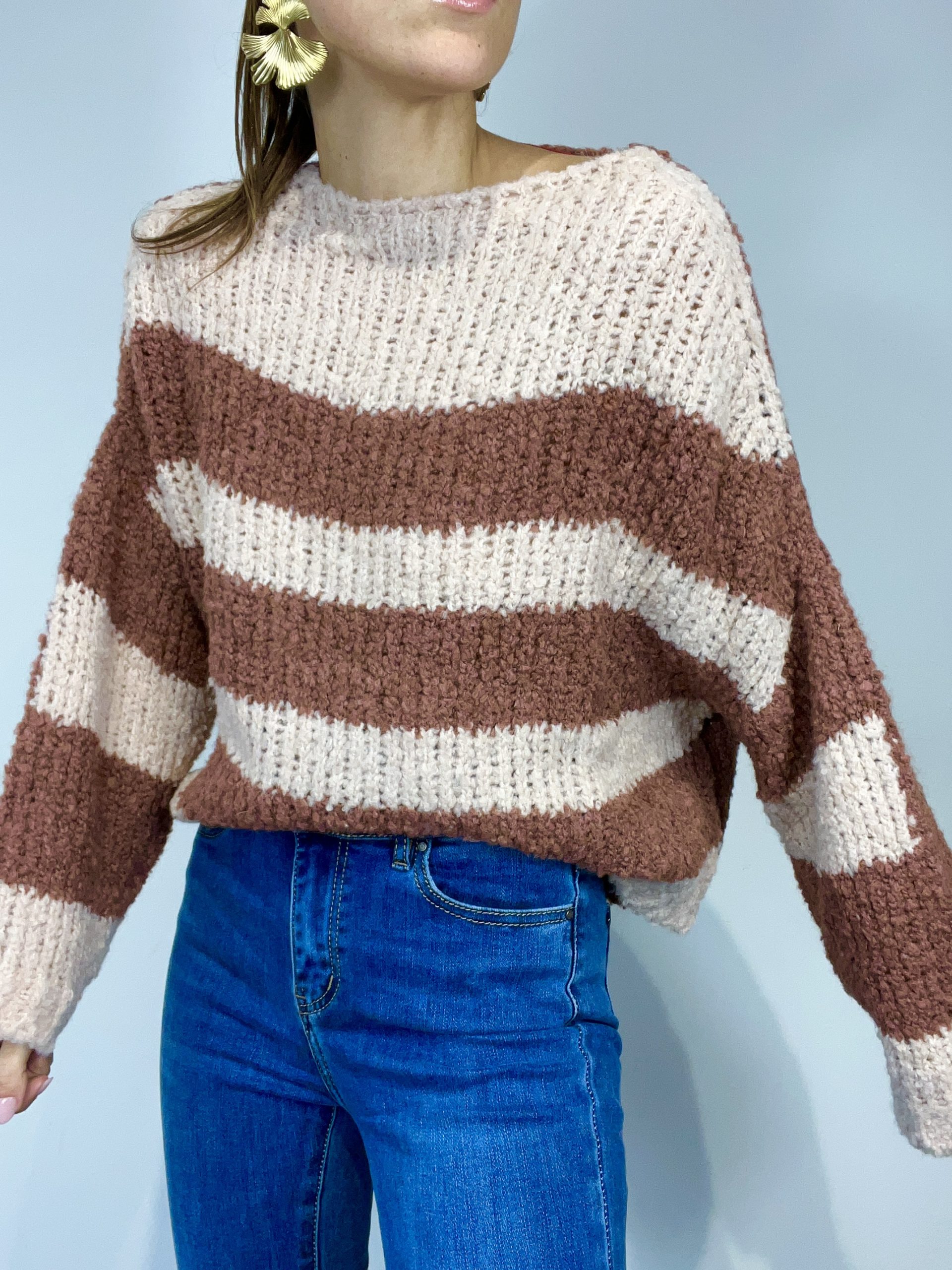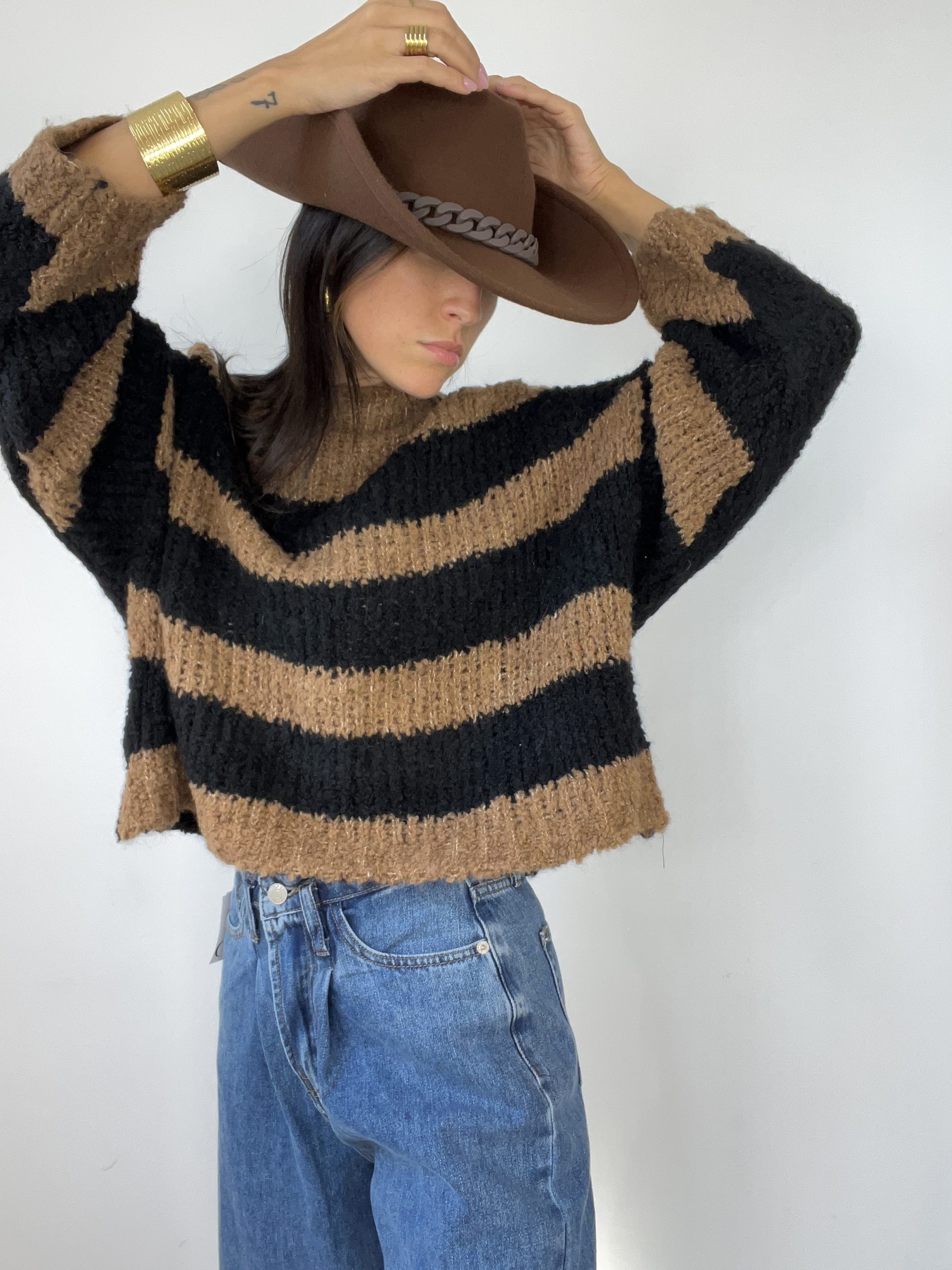 Maglione made in Italy con fasce di colore a contrasto. Tessuto elasticizzato e morbido.