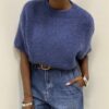 Maglione a girocollo a costine, realizzato in misto lana e misto mohair per un effetto soffice, caldo e piacevolmente avvolgente. Il design con maniche a tre quarti dona un tocco moderno e femminile, mentre la lavorazione elasticizzata garantisce comfort e una vestibilità perfetta. Un capo versatile ed elegante, ideale per completare con stile sia look casual che più ricercati.