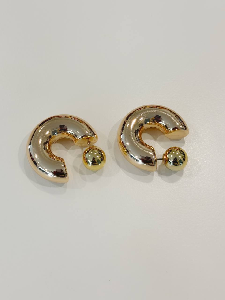 Orecchini a mezza luna con dettaglio di pallina di chiusura.