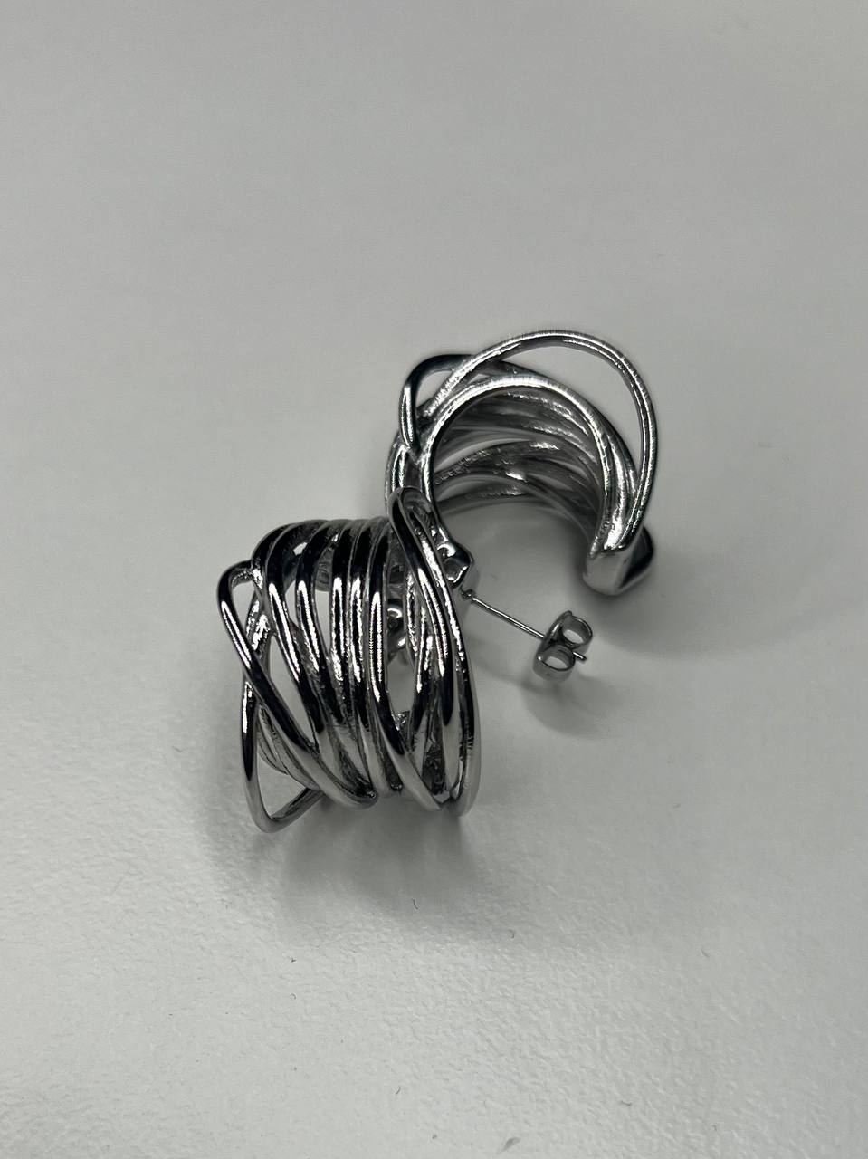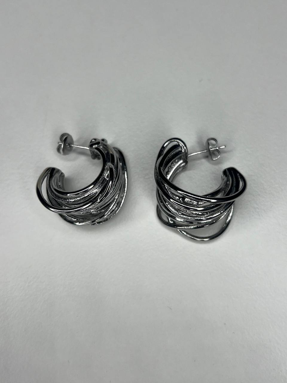 Orecchini a mezza luna intrecciati con chiusura di ago e farfallina.