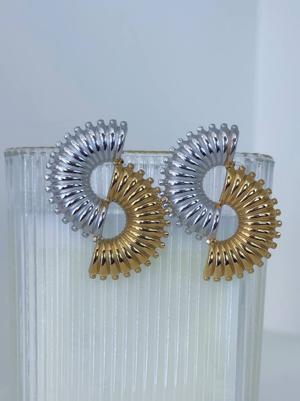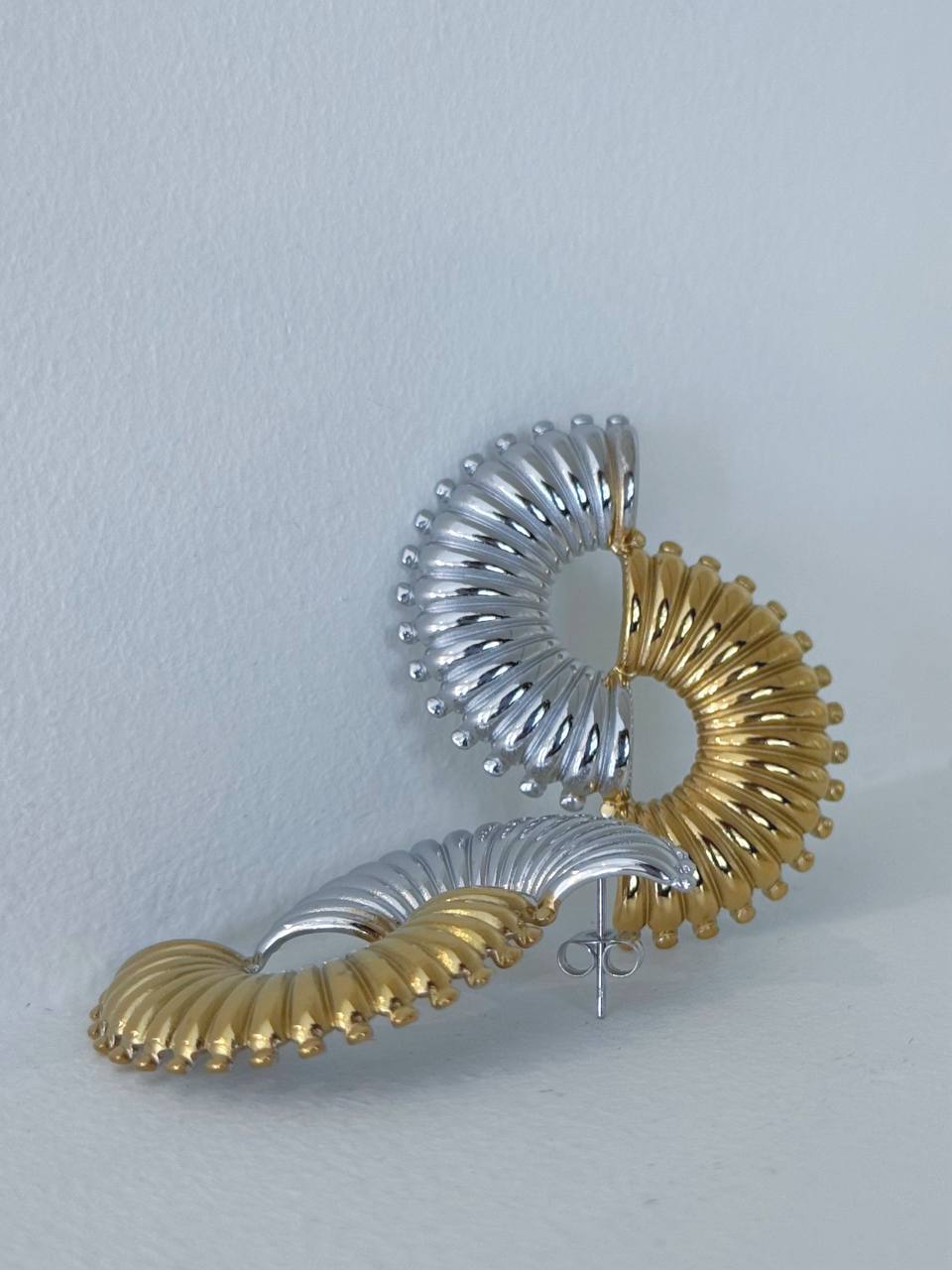 Orecchini a forma di S con doppio colore. Chiusura con ago e farfallina.