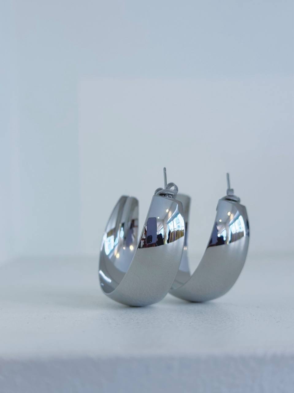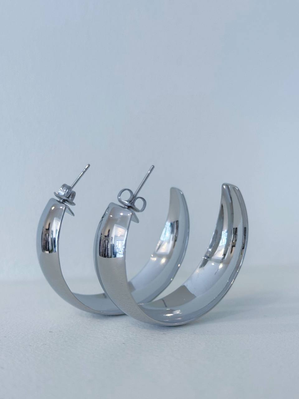 Orecchini a mezza luna a tinta unita. Chiusura con ago e farfallina.