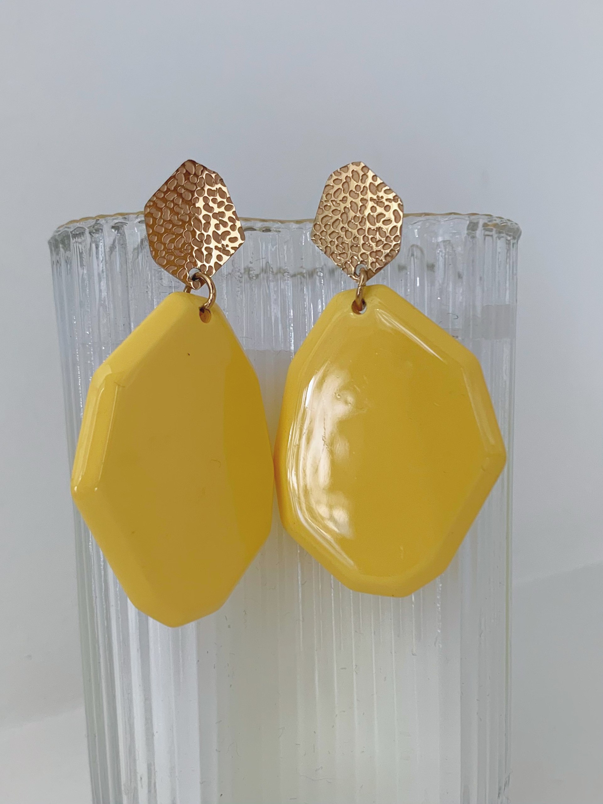 Orecchini geometrici a tinta unita con dettaglio di chiusura con ago e farfallina.
