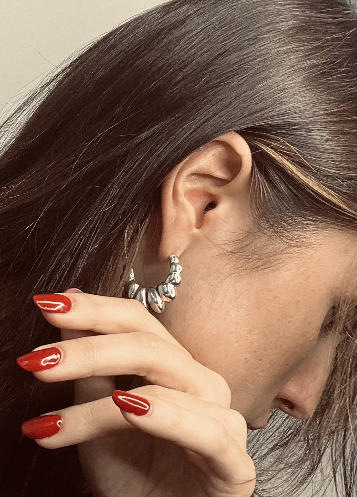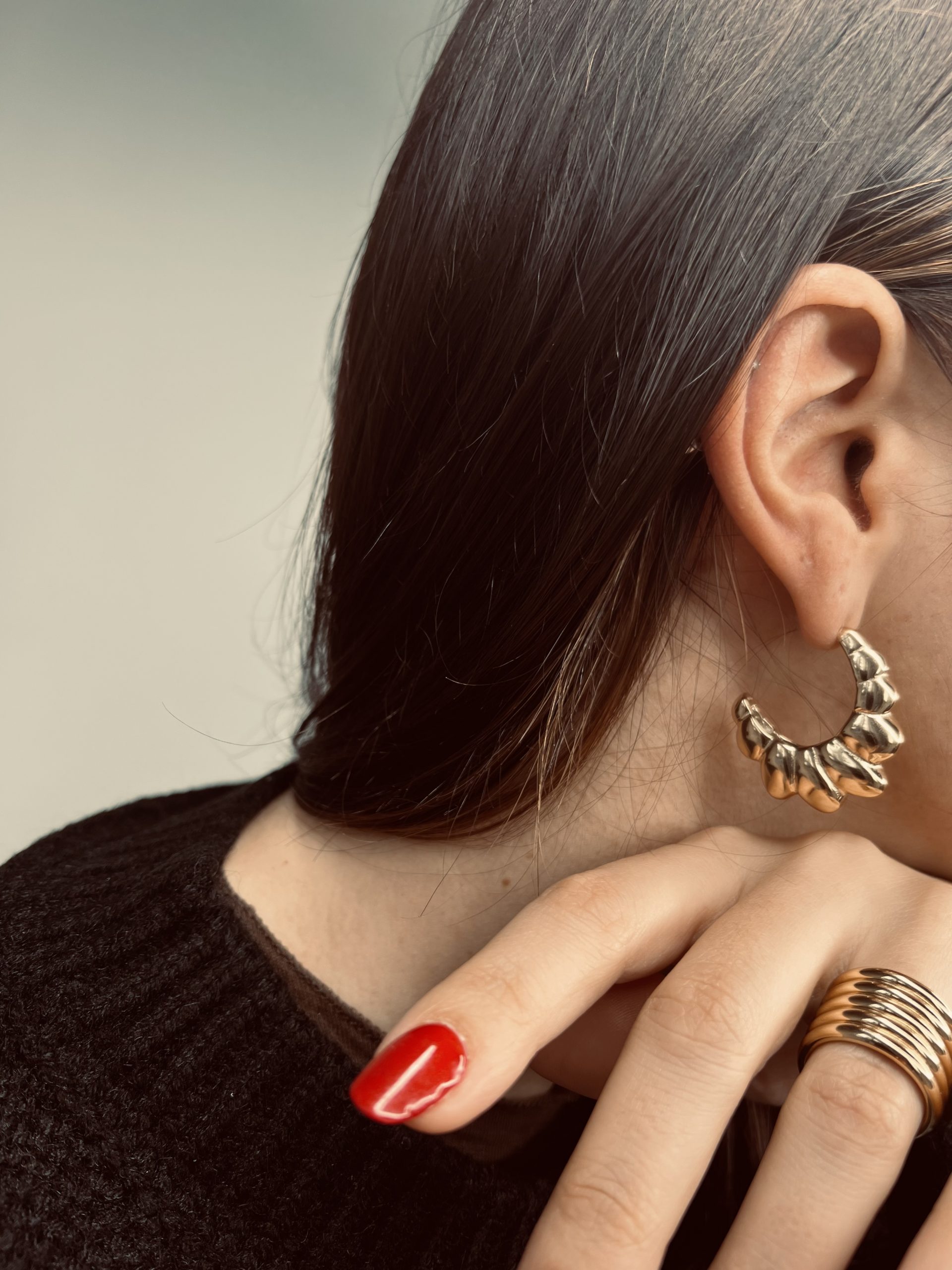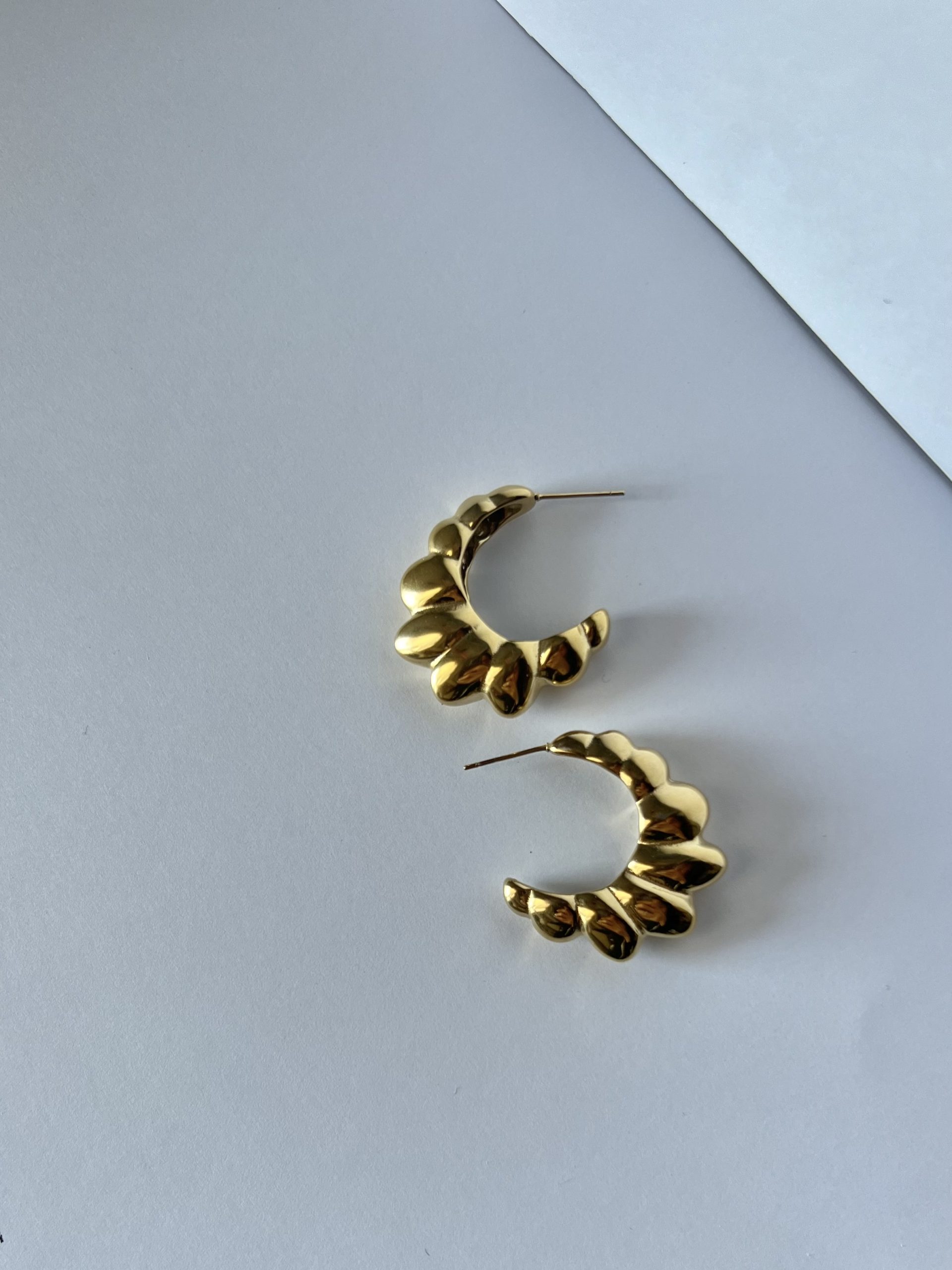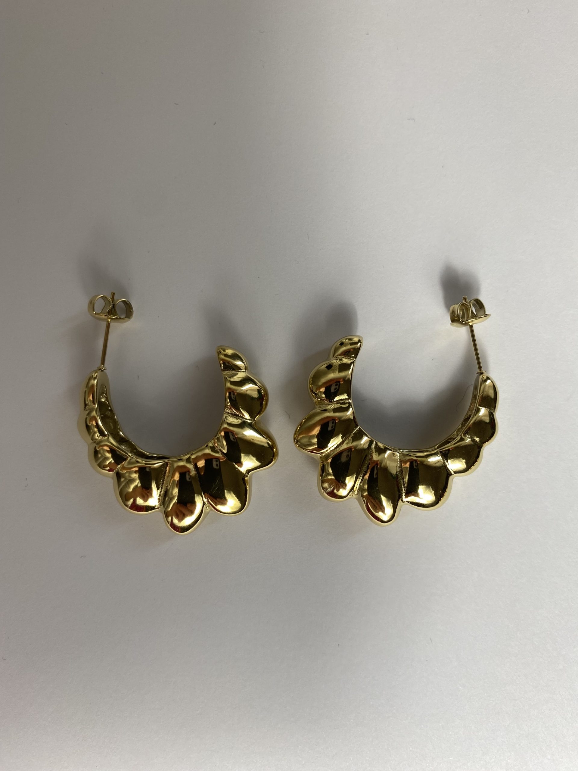 Orecchini a mezza luna, dettaglio di farfallina di chiusura