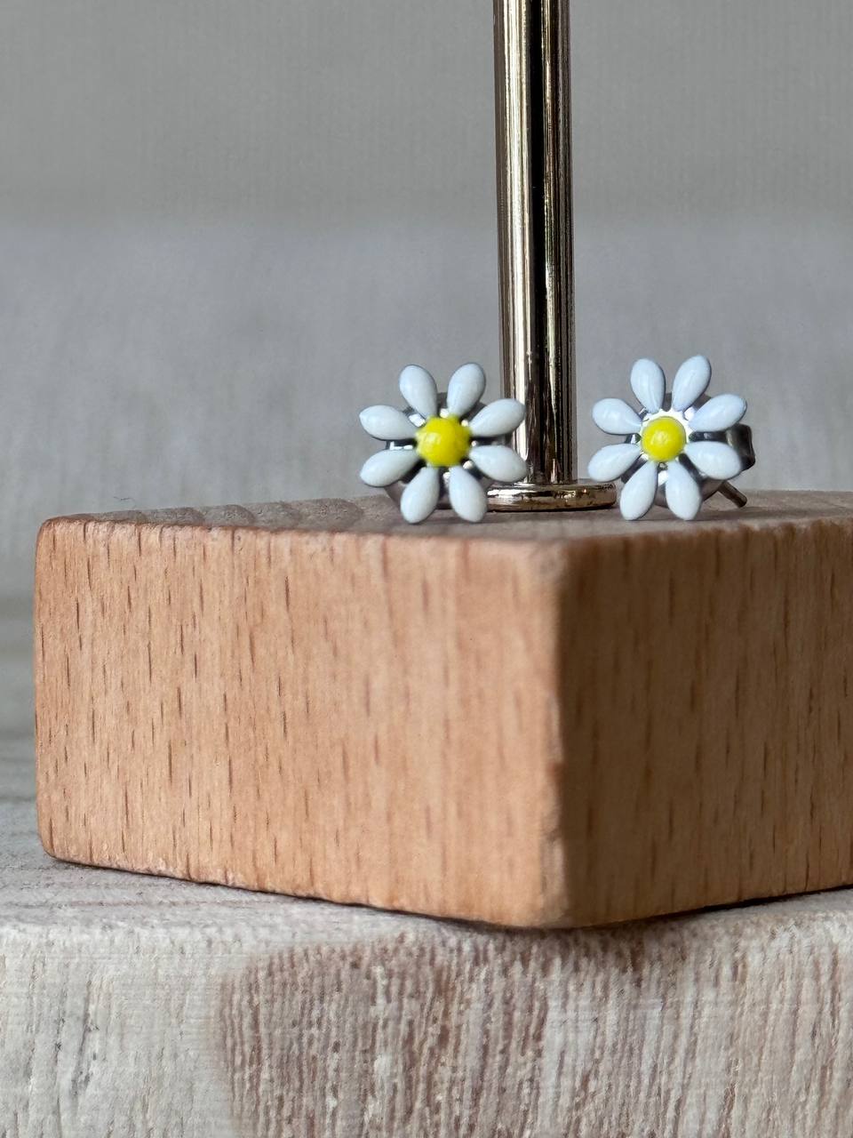 Orecchini margherita a tinta unita. Chiusura con ago e farfallina.