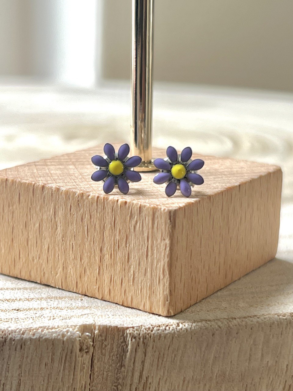 Orecchini margherita a tinta unita. Chiusura con ago e farfallina.