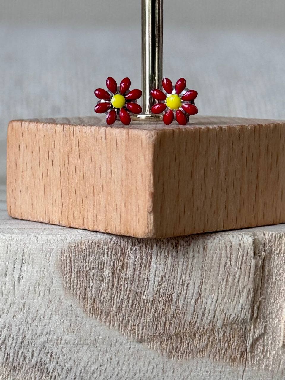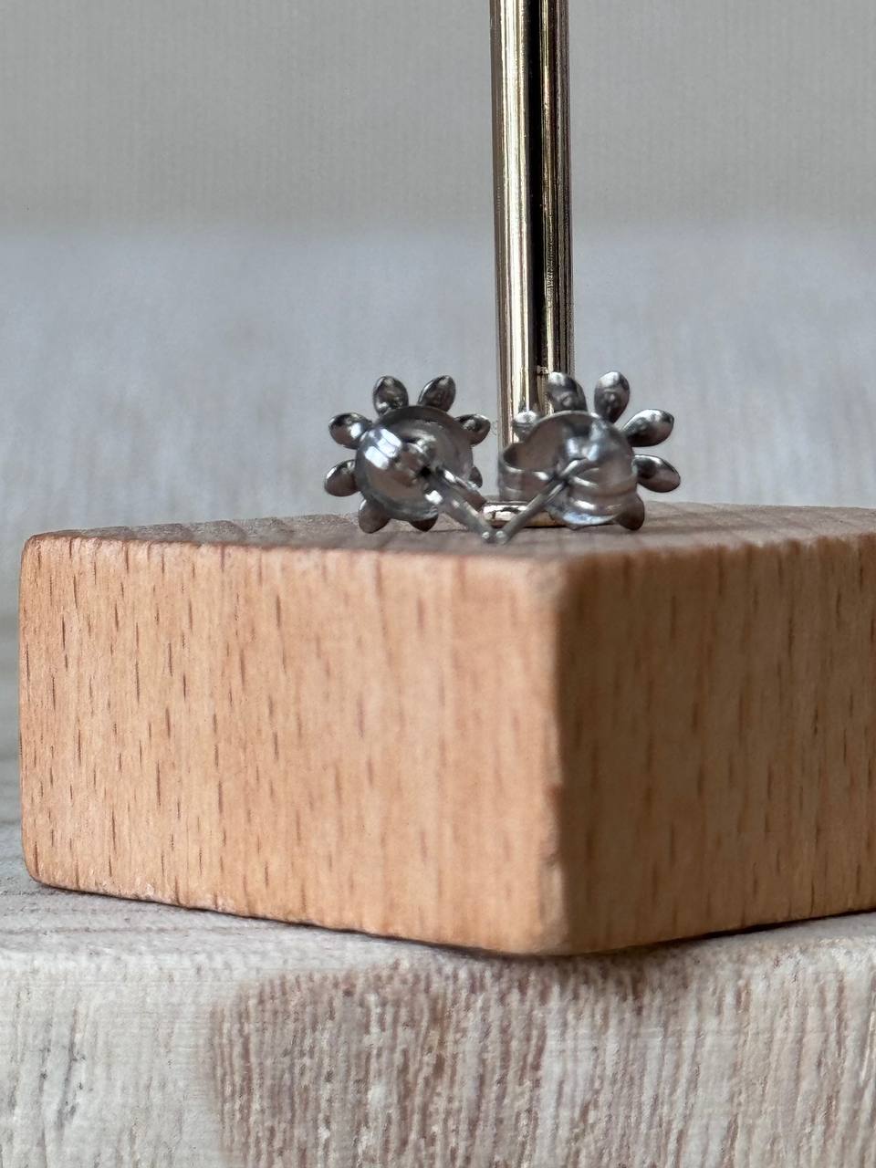 Orecchini margherita a tinta unita. Chiusura con ago e farfallina.