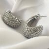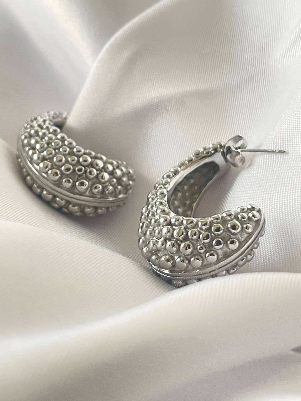 Orecchini a mezza luna martellati a tinta unita. Chiusura con ago e farfallina.