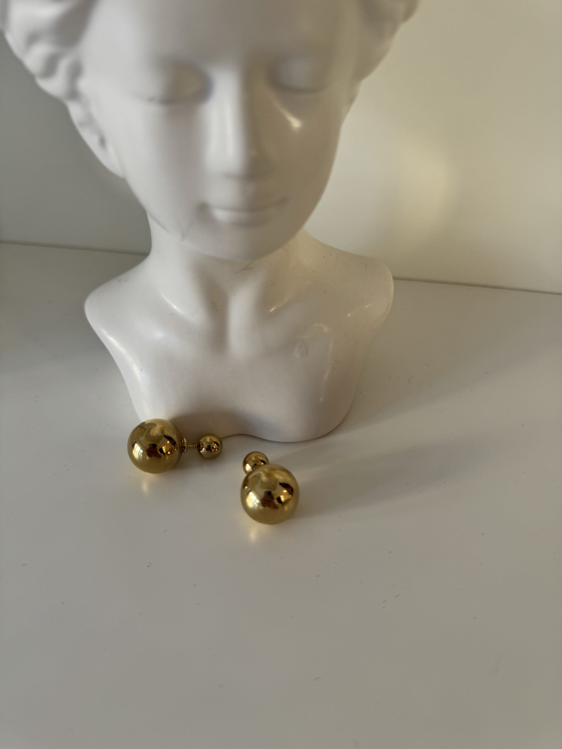 Orecchini pallina color oro. Chiusura con ago e farfallina.