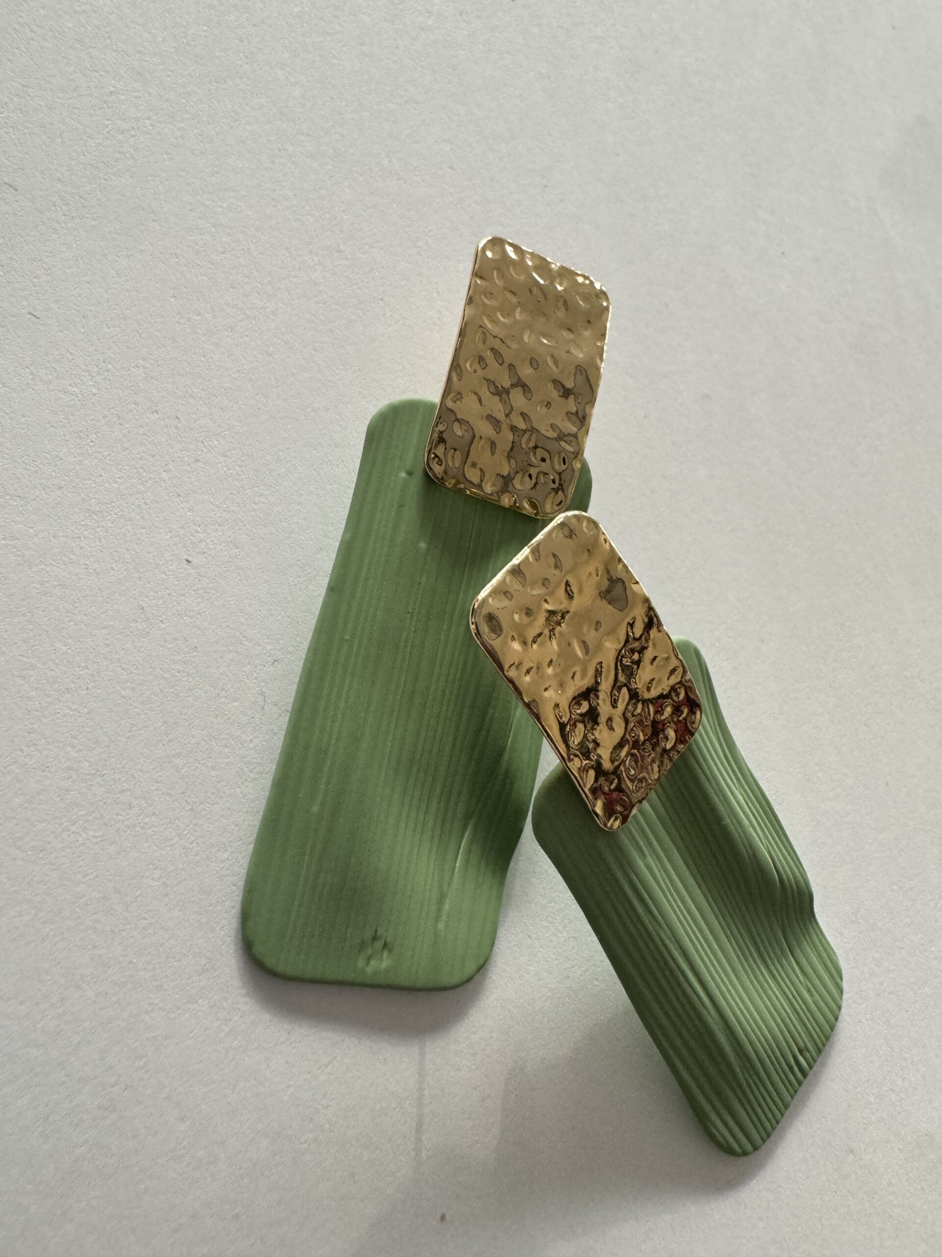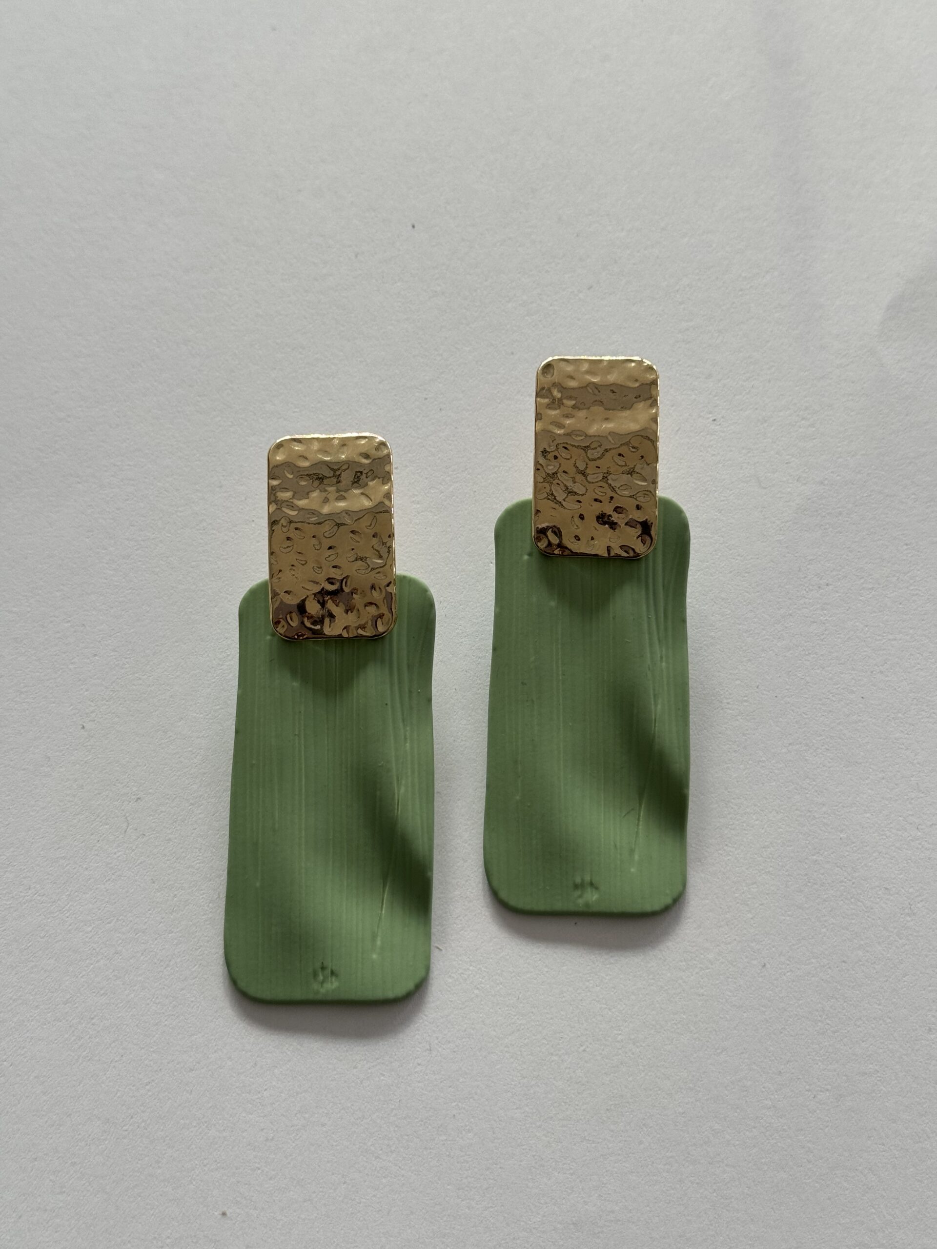 Orecchini rettangolari con dettaglio di chiusura con ago e farfallina.