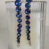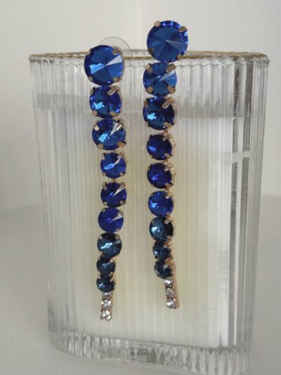 Orecchini pendenti a strass color blu. Chiusura con ago e farfallina.