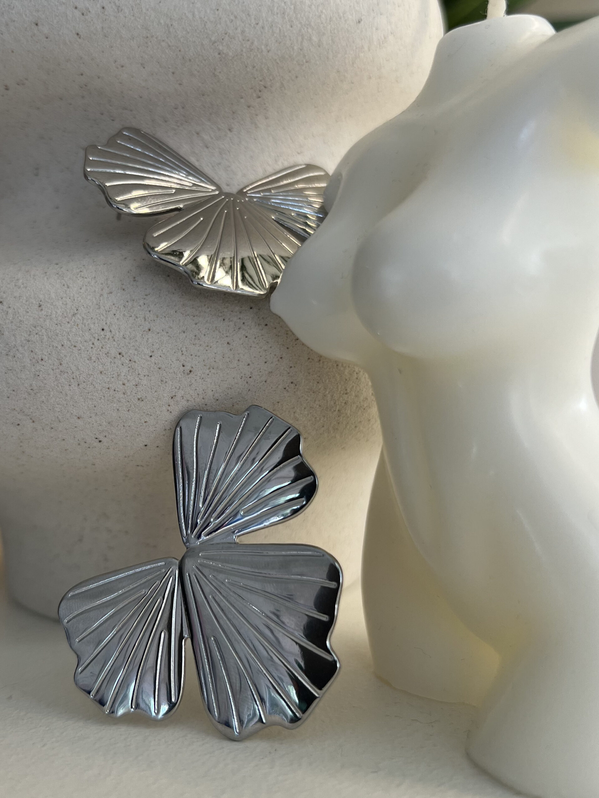 Orecchini trifoglio . Chiusura con ago e farfallina.