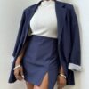 Il capo è caratterizzato da un discreto spacco laterale, che dona un tocco di femminilità e movimento, lasciando intravedere la gamba in modo delicato e sofisticato. A completare il design, una zip laterale nascosta assicura una chiusura pratica e pulita, mantenendo il profilo essenziale e minimale del modello.