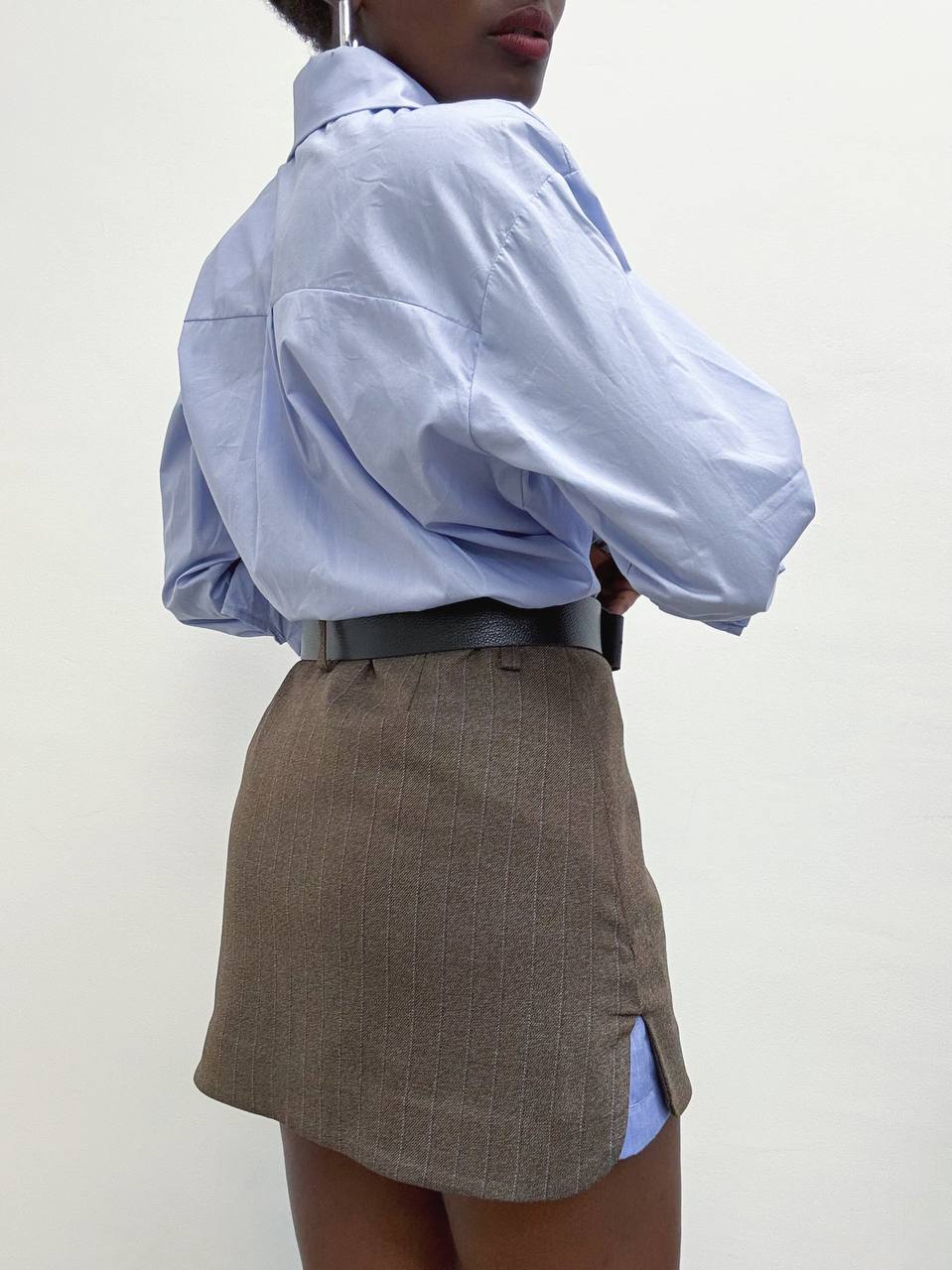 Pantagonna gessato realizzato in una viscosa strutturata di cui sentirai la presenza e la compattezza.Il design presenta un pantaloncino interno in cotone , che garantisce comfort e libertà di movimento, mantenendo uno stile audace e raffinato. Capo versatile, perfetto per outfit da giorno o da sera, da abbinare a stivaletti, sneakers o sandali con tacco per un look sempre impeccabile. Consigliato da indossare con la nostra camicia Angel azzurra in popeline di cotone.