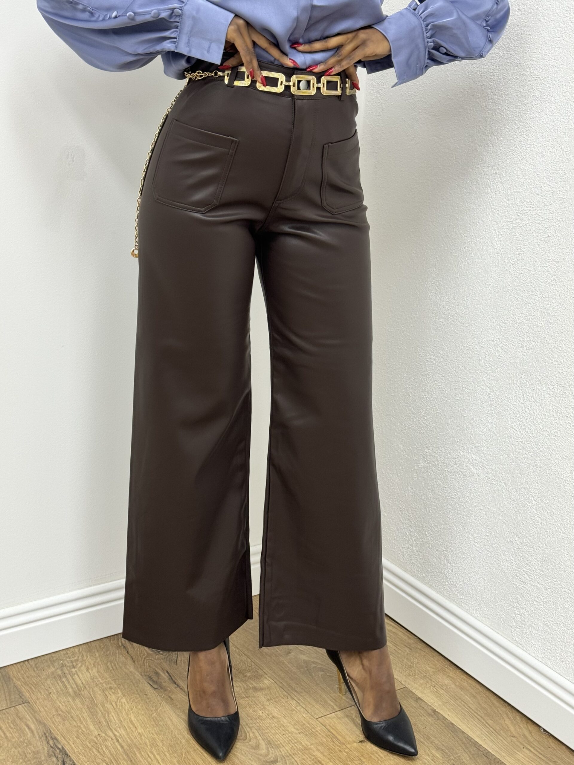 PANTALONE CULOTTE IN ECOPELLE CIOCCOLATO